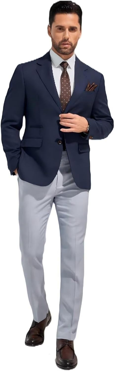 Package Included:1*Men Suit Blazer More Details:Fabric: 80% Polyester and 20% Viscose,Inner fabric: 100% Polyester. comfortable and durable,easy to wash and keep in shape. Size: We have XS,S,M,L,XL,XXL,XXXL,XXXXL in stock. Please carefully read our Size Chart before ordering, ignore the Amazon's size. Suitable for multi occasions: Our men suit set is suitable for wedding, business, graduation, party, work, dating or daily wearing. Also a perfect gift for your boyfriend/husband/father or other male friends. Match: Classic and fashion design makes you more handsome and charming. Perfectly match with your favorite white shirts or T-shirts. You can also wear a tie or bow tie to look more formal and gentle. Warm Tips: Hand wash gently at low temperature, steam ironing, hang up to avoid wrinkles,we also recommend dry clean if condition allows. Notes: 1. Please choose a suitable size before ordering. If you are not sure about the size or have any special requests, please feel free to contact us and we provide custom service. 2. There may be around 1-3cm size difference due to manual measurement. 3. The colors might look slightly different from the picture due to different cameras and monitor settings.