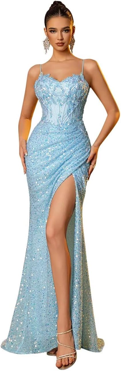 | Material Type | Mermaid Evening Gowns For Women Formal Sparkly Sequin Prom Dresses With Slit Beaded Homecoming Dresses Long 2024 Deep Blue US06 |