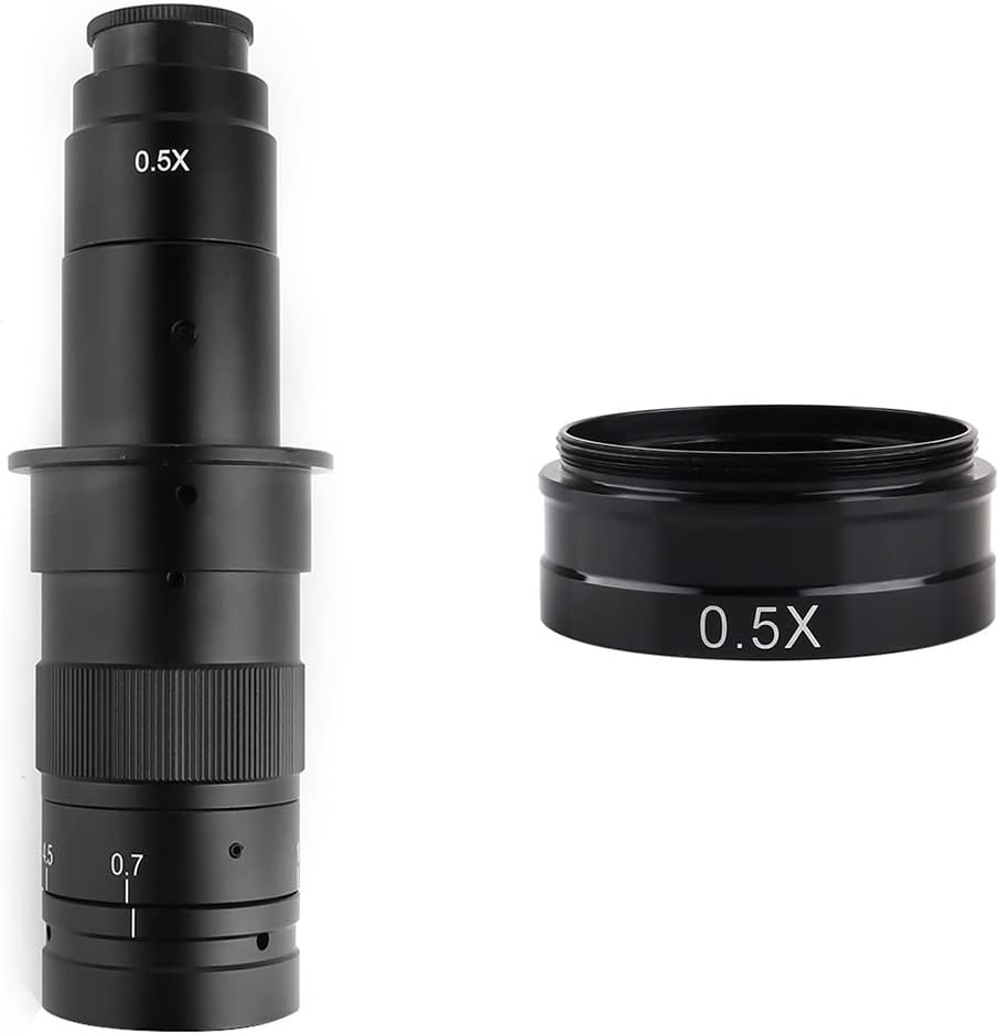Note: all objective lenses are only suitable for 180X lenses and cannot be mounted on 130X lenses!130X Type C mounting lensMagnification Power by 0.12 - 2X (about 8X - 100X on the display)Work distance: 100mmVisual field :2.4mm-32mmSize: 115mm(L) * 40mm(DIA)Weight: 210gWorking distance:30-4.5cm180X Type C mounting lensFeatureHigh quality, high definition,requires c-mount microscope camera to use.0.5X C-mount adapterZoom ratios: 6.5:1Working distance: 50~155mmZoom C mount lensMagnification:8X~180XSize:175mm*50mmWeight: 0.57kg180X lens auxiliary objective lens0.3X 0.5X 0.75X 2.0XFeature:0.3X 0.5X 0.75X 2.0X Magnification Powerfor Industrial Microscope Camera C-MOUNT Lens1-3/4" (42mm-43mm) Mounting ThreadDoubling Total Magnification power of your Microscope and reduce the focus lengthPackage includes: Reference SKU picture. According to your choice.