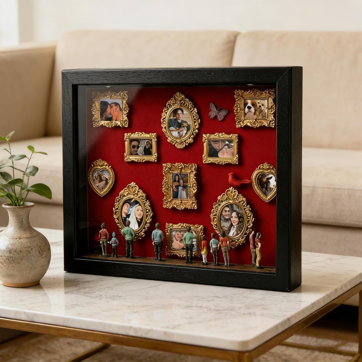 Silhouette Box Miniature Museums with Figurines are designed to light up your space while creating fun and cherished memories. This DIY Memory Display Kit allows you to craft a distinctive decorative piece, perfect for couples, lovers, family, friends, or as a sincere gift for her, him, wife, or husband. Each box serves as both memory decor and a creative display, ideal for showcasing meaningful moments. Whether celebrating relationships or personal milestones, this miniature museum brings joy and sentimental value to any setting. Engage in the delightful process of assembling and illuminating your creation, adding warmth and personality to your home or office. Silhouette Box Miniature Museums inspire connection, creativity, and lasting memories.SpecificationProduct Name: DIY Mini Museum BoxMaterial: woodSize: 31.4*22.7*3.7cm/12.36*8.93*1.45 inchesWeight: 440gPacking size: 33*25*5cm/12.99*9.05*1.97 inPacking weight: 560gColor: white, black with red, wood with greenListDIY Mini Museum Silhouette Box x1Mini photo frames x10Mini figurines x8Note:1. Due to lighting effects and display angles, there may be color differences in the product.2. Due to manual measurement, there may be errors in product size, please understand.