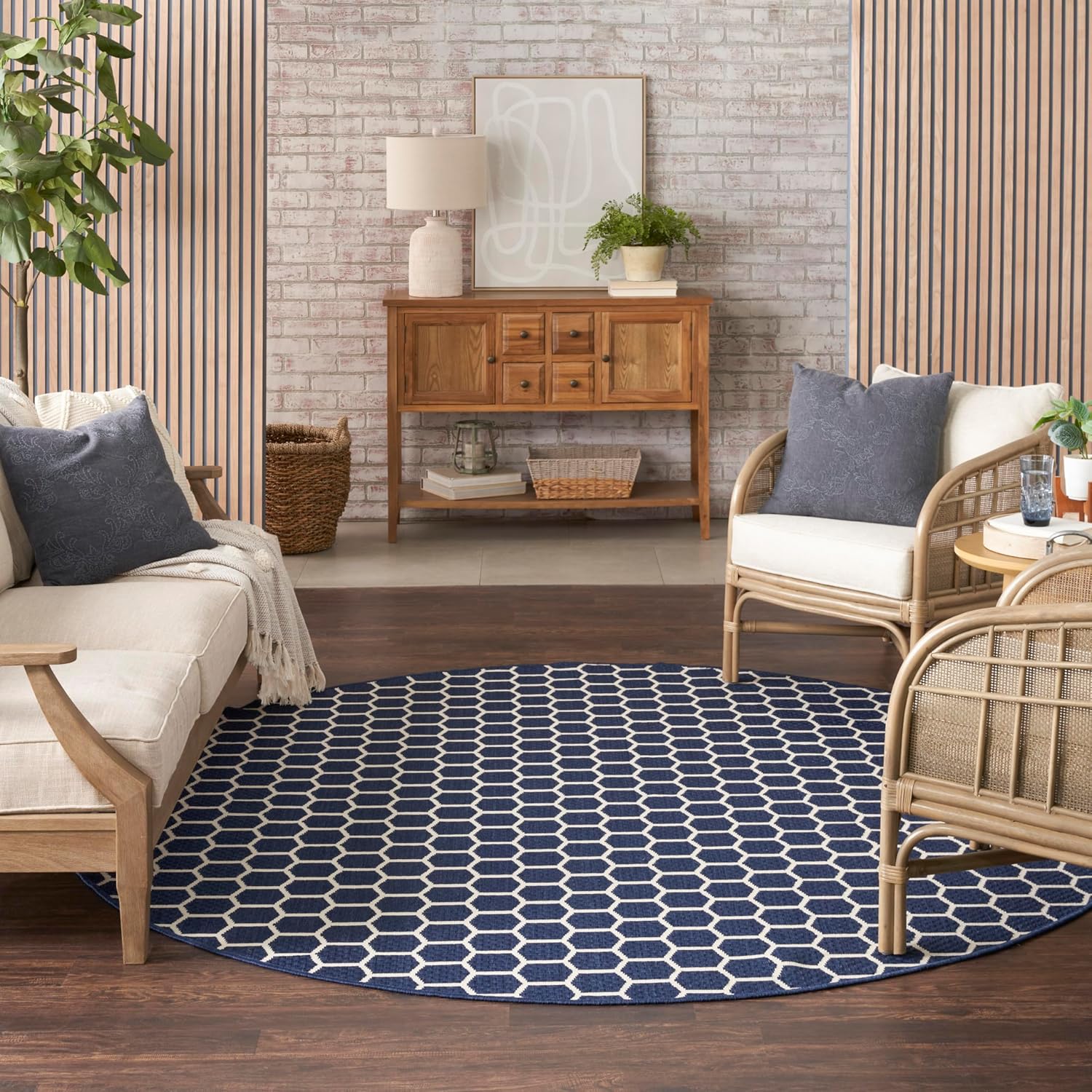 Show off your love of bold and modern style with the Reversible Indoor/Outdoor Collection. These rugs epitomize versatility: whenever you want to switch up your style, just flip one over! Each design reverses to an inverted variation of the same pattern, giving you two distinctive ways to style one rug. Reversible Indoor/Outdoor rugs are made for everyday living with a lightweight, flatweave construction that you can easily vacuum and hose rinse to keep clean. Choose from a variety of sizes including runners for the kitchen, 9x12 rugs for the living room or a large deck, and 5x7 rugs for bedrooms and small apartments. Refresh your outdoor décor with the bold style of this natural brown geometric rug from the Reversible Indoor/Outdoor Collection. The honeycomb design adds an instant pop of pattern that you can dial up or tone down by flipping it over to an inverted color variant of the same pattern. This reversible rug is an ultra-versatile pick that not only gives you two looks in one but fits seamlessly in both indoor and outdoor spaces. Made from polypropylene and polyester fibers that are low maintenance and easy to clean.