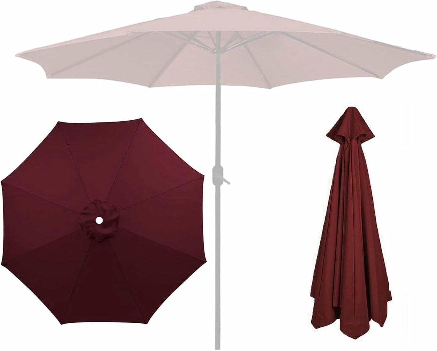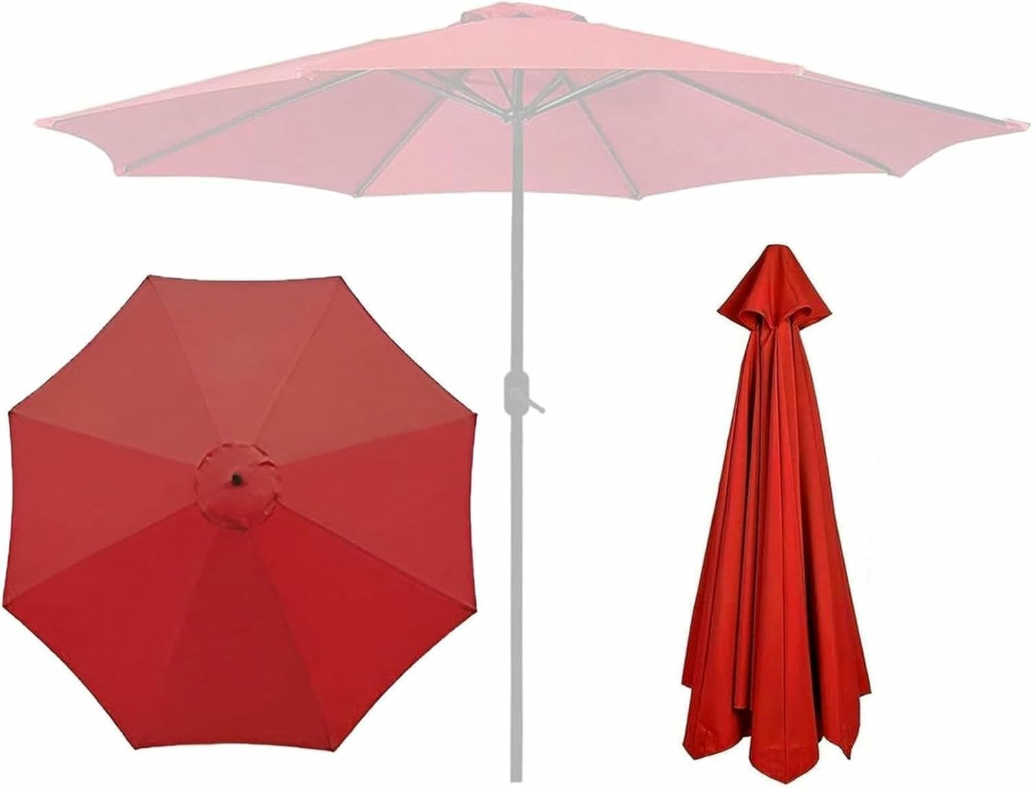 ✈【Product description:Name: Replacement Parasol Canopy Fabric coverMaterial: Polyester fabricColor: white , Red , Green , Burgundy , Black , Top color , Lake blue , Gray , Khaki , Navy blue , Brown , Grass green , Yellow , Royal blueSize: 200cm(6.5ft), 270cm(8.8ft), 300cm (9.8ft); 6 Arms/8 Arms✈【Features:---- Made of high-quality polyester fabric, anti-fade, strong.---- Removable and washable, easy to clean after usage.---- 6/8 ribs Umbrella Fabric Canopy Cover fits most patio umbrellas.---- Replacement umbrella canopy ONLY (umbrella ribs, pole and top finial are not included).✈【Measurement methods :❶Umbrella cloth with a diameter of 200cm is suitable for Arms with a length of 97 ~ 99cm (38 ”~ 39‘’)❷Umbrella cloth with a diameter of 270cm is suitable for Arms with a length of 132 ~ 134cm(52” ~ 54")❸Umbrella cloth with a diameter of 300cm is suitable for Arms with a length of 145 ~ 147cm(57" ~ 59")