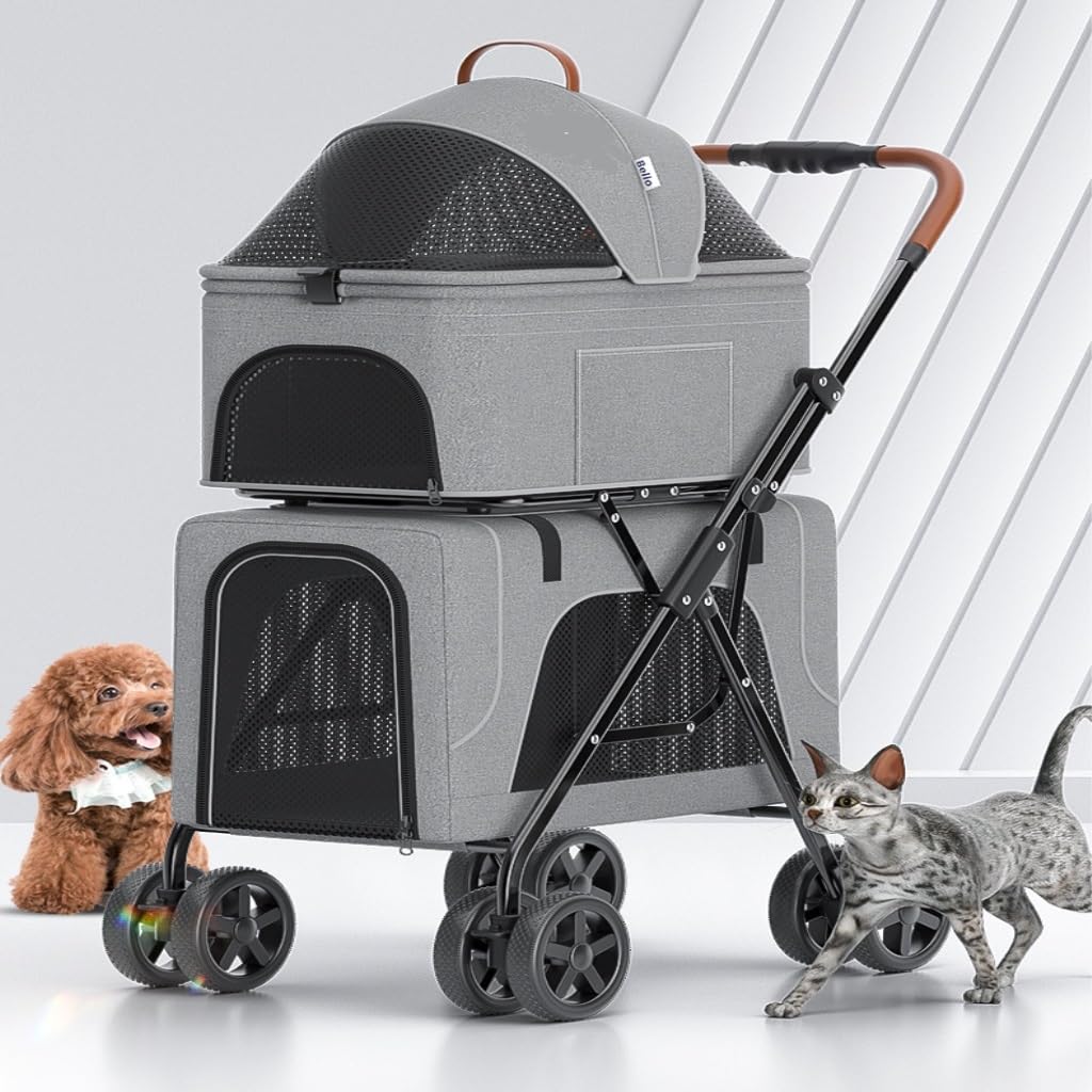 Designed for families with pets, this pet stroller is perfect for dining out, veterinary visits, or road trips. It is suitable for small pets such as cats, rabbits, and ferrets, making it an ideal choice for families with different companions.Product name: pet strollerColor: blue, green, grayPractical scope: cats and dogsExpanded size: 68*48*105cmFolded size: 75*48*44cmUpper layer size: 53*31*47cmLower layer size: 55*31*38cmLoad bearing: below 10KGWeight: 8.32kgThis pet stroller can ensure a smooth and gentle ride for your furry friend, guaranteeing your pet a comfortable ride wherever you go, and protecting your pet from harsh elements such as rain, snow, dust, and heat.