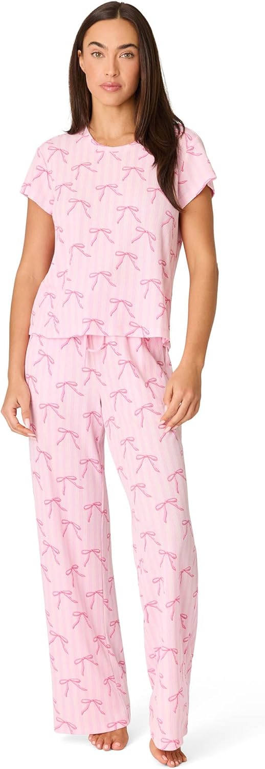 Reach for the stars with our bright pink short sleeve set, featuring a fun white stars print. Made from ultra soft mini waffle knit, this set includes a cozy short sleeve top and matching pants with handy pockets. The bold pink hue and starry pattern add a touch of playful charm to your loungewear collection. Perfect for relaxing or dreaming under the stars, this set combines comfort with a touch of celestial style.