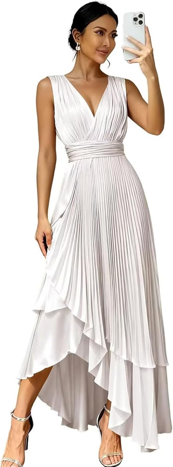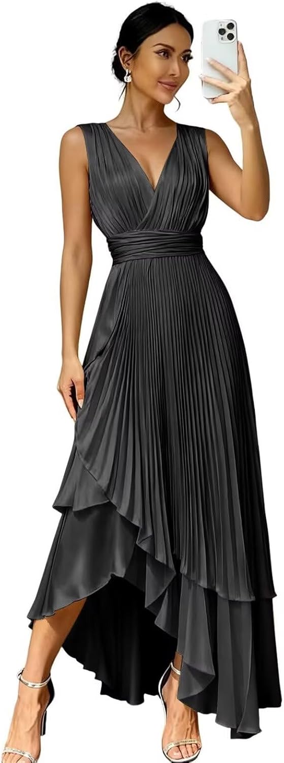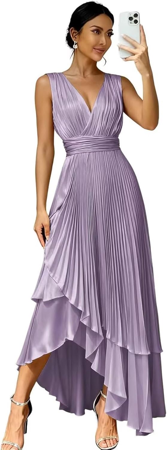 | Occasion Type | Pleated formal dress, Satin bridesmaid dress, Satin wedding guest dress, a-line bridesmaid dress, v-neck evening dress |