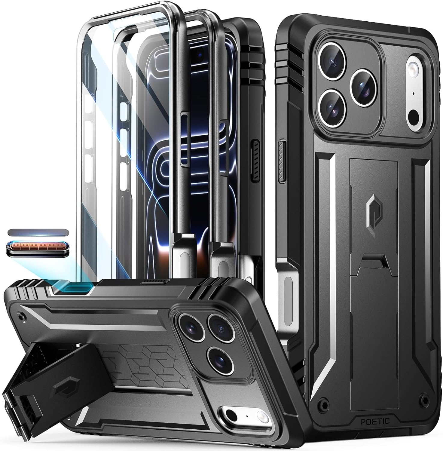| BuiltIn Media | 1 * iPhone 17 Case with Slide Camera Protection & Built-in Screen Protector & Built-in Stand & Camera Control Capture Button + 1 *Front Frame without Film |