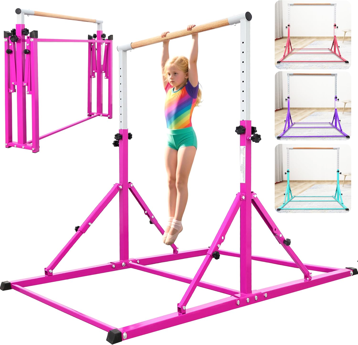 Gymnastics & Sports Equipment Supply: IDEAL GIFT FOR YOUR LOVELY KIDS- PreGymnastic foldable gymnastics bar will be an ideal and perfect gift for your kids to start exercise and burn their energy in daily life or long break. Shining sticker is included, your lovely kids will be happy to use the stars, flowers and letters to decorate their own special training bar.