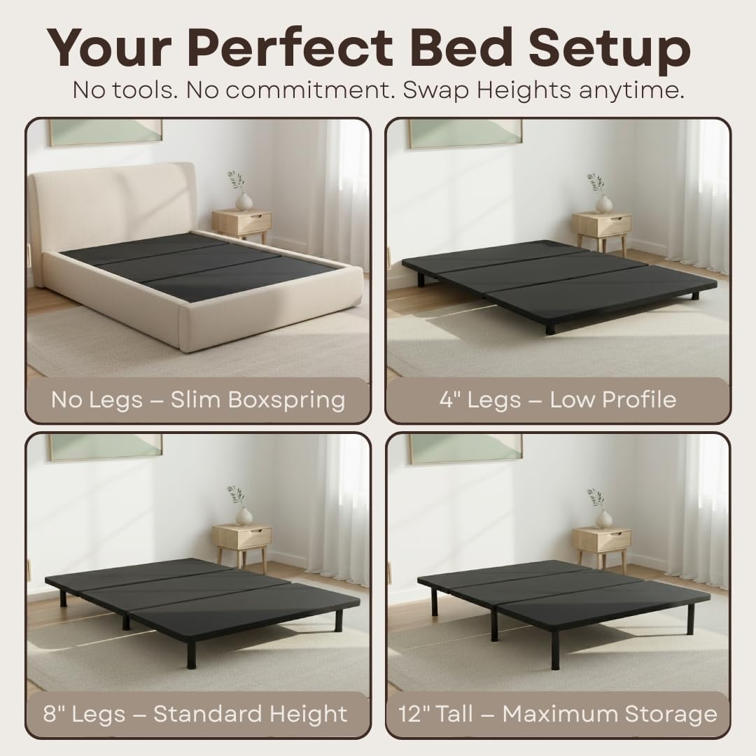 Simplicity meets function with the ZenBase, designed for ultimate mattress support. This sleek black platform is all about keeping things cool—literally. Its durable, low-profile frame promotes airflow, helping your mattress stay fresher longer. No boxspring? No problem. The ZenBase is all you need for a sturdy night's sleep. With a clean design and minimalist vibe, it seamlessly blends into any bedroom. Stress-free assembly makes setup quick, and it's compatible with all standard mattresses, ensuring versatility for your bedding needs.