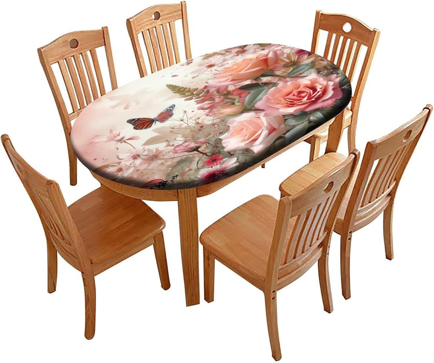 Product Title: Premium Waterproof Polyester Oval Table Cover - Multi-Purpose, Low Maintenance, Customizable Design and SizingProduct Description:Perfect Fit and Customization: This package comes with a Polyester table cover, meticulously designed for oval tables. Available sizes include 42x60 inch, 48x68 inch, 52x70 inch. the elastic edge design ensures an easy and snug fitting to any oval table within the specified size range. Our customization services also extend to the images and sizes. For any personalized needs, feel free to contact us.High-Quality Material: Our table cover boasts 100% high-quality polyester which guarantees excellent durability and resistance against damage. the material is waterproof ensuring effective protection from spills and accidents.Aesthetically Pleasing Design: Drawing inspiration from nature and cozy, our polyester tablecloth exhibits sophisticated hemmed edges and a seamless construction. Beyond serving as a mere tablecloth, it significantly contributes to the aesthetics of your home decor.Multi-Use Tablecloth: Our tablecloths deploy versatility at its best, fitting into settings in dining rooms, living rooms, kitchens, patios and garden tables. Be it daily dining or special occasions such as family gatherings, birthday parties, or fall parties, our tablecloth amplifies the allure of your surroundings.Easy Maintenance: Engineered to be spill-proof, dust-proof and wrinkle-free, our tablecloth ensures minimal maintenance. It can be machine washed in cold water and tumble dried. However, for optimum results, we recommend hand washing and air drying. Made from a premium fabric, it requires little to no ironing.Note: Our objective is to ensure you are 100% satisfied with your purchase. In case of any concerns or questions about the product, feel free to reach out to us. We are committed to providing all necessary assistance.