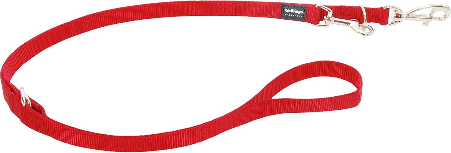Functional, durable and smart, Red Dingo Leads are available in a variety of sizes and configurations. The Multi-Purpose Lead is adjustable for use in 6 ways. By clipping to one of the D-rings along the lead you can adapt the lead to various uses - as a long lead, medium lead, short lead, shoulder lead, hands free and temporary tie.