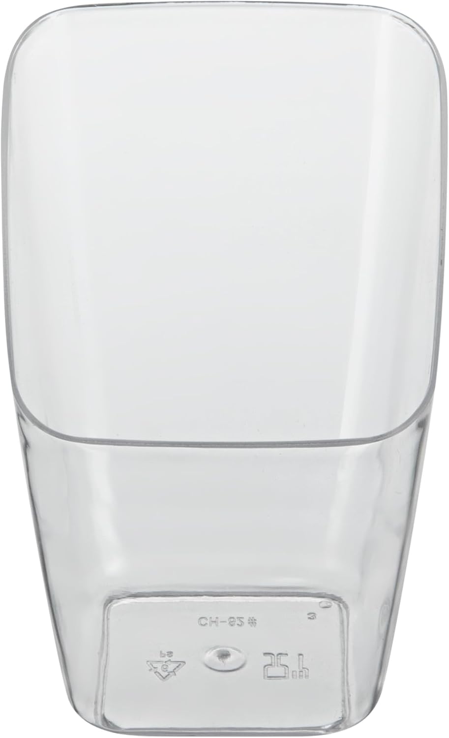 Present your desserts elegantly with our Mini Serve 2.4-ounce Square Clear Plastic Dessert Cups. These plastic dessert cups are made from sturdy PS plastic, ensuring they withstand even the busiest events. The modern slant design adds a touch of sophistication to every serving, making these clear dessert cups a perfect addition to any dessert table. Suitable for handling cold foods, these clear plastic dessert cups can perfectly showcase ice cream, mousse, or fruit salads. The clear finish of these dessert cups enhances the visual appeal of your desserts. These clear dessert cups are stackable and can be easily stored, maximizing your space. Measuring 2.4 inches in length by 2.4 inches in width by 3.1 inches in height, these 2.4-ounce dessert cups are compact yet provide adequate capacity for delectable treats. Sold in a 100 count box.
