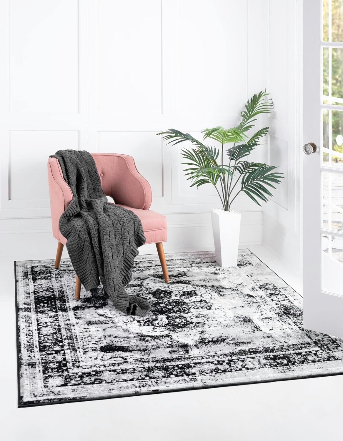 • Medium-pile rugs provide a happy medium between durability and comfort. With occasional cleaning, they're best in medium-traffic spaces like living rooms and bedrooms. This rug is kid and pet-friendly.