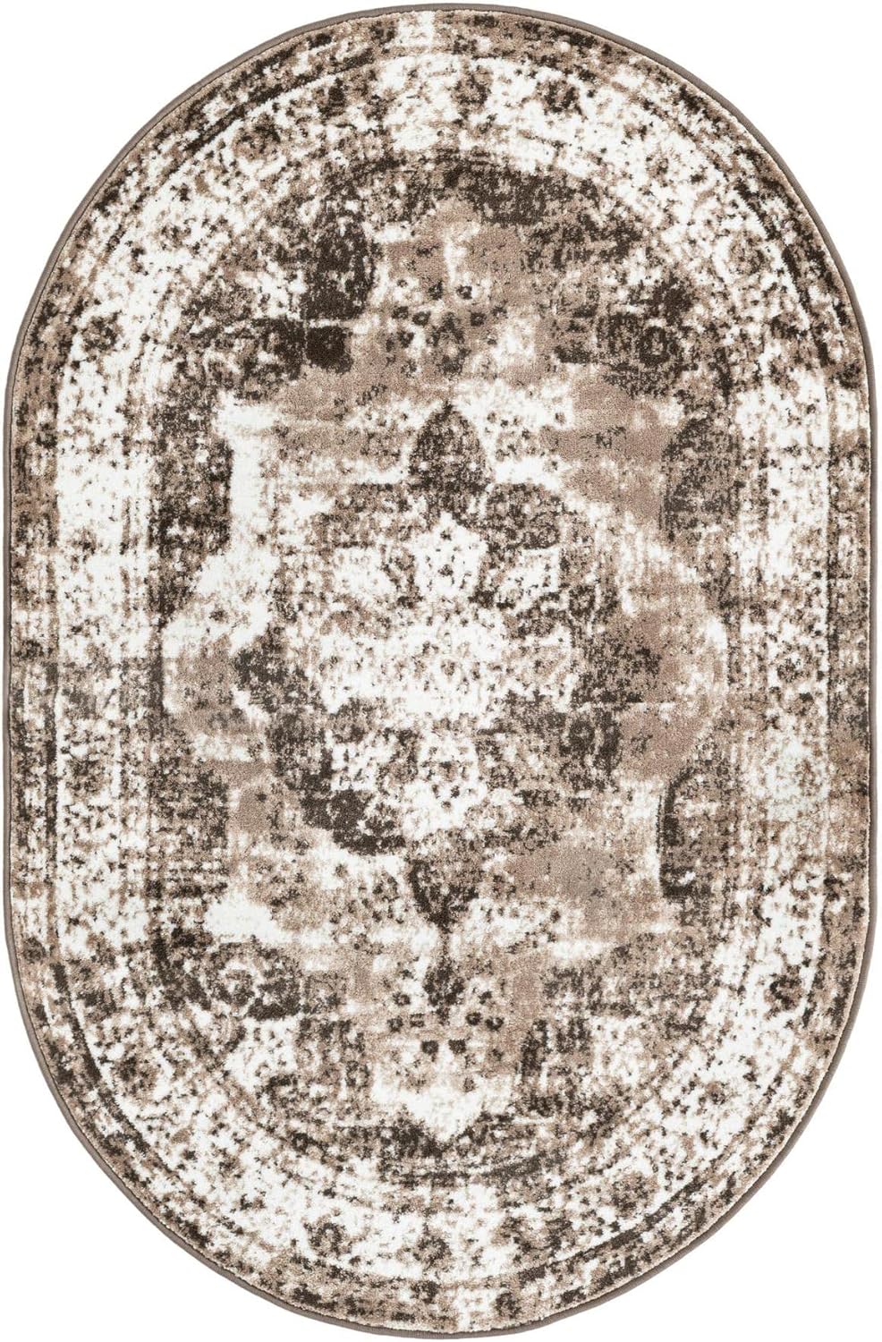 Rugs.com Monte Carlo Collection Rug – 8' x 10' Oval Beige Medium Rug Perfect for Living Rooms, Large Dining Rooms, Open Floorplans