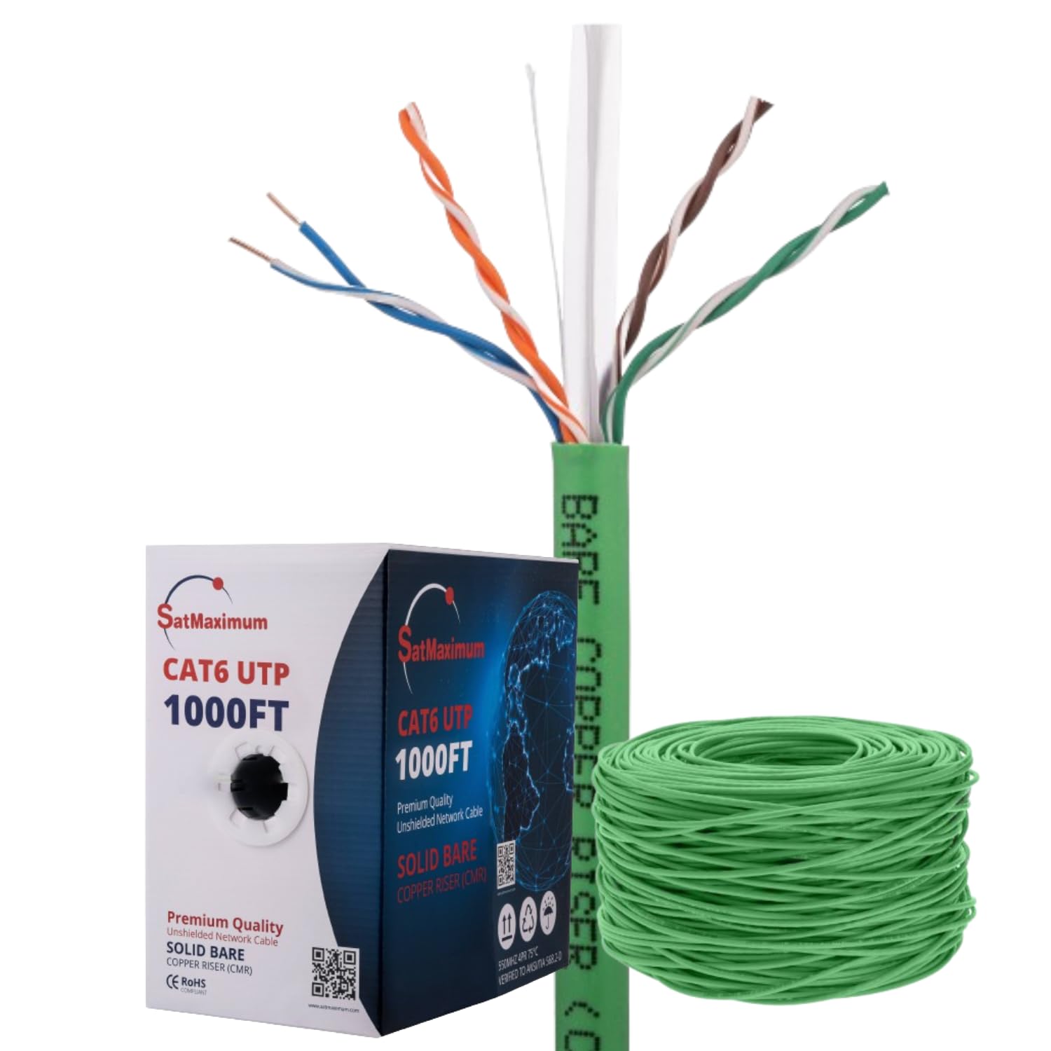 Technical Specs: **Type: Riser Bulk Indoor** **Category: Cat6**** **AWG (Gauge): 23 AWG **Unshielded** **Cable Construction: 4 Twisted Pairs, Ripcord, Pair separator spine** **Conductors: Bare Copper** **Conductor Type: Solid** **Speed: Up To 10 Gbps** **Bandwidth: Up To 550 MHz** **Jacket: Flame Retardant PVC** **Packaging: Tangle-Free, Foot-Marked Easy-Pull Box** **Length: 1000 FT**