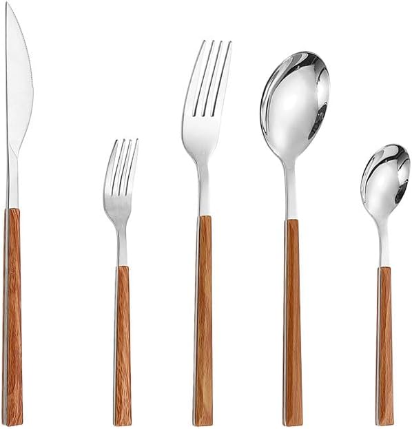 Item number: Wood grain square handle knife, fork and spoonMaterial: Stainless steelPolishing process: Cloth polishing (mirror polishing)Set list: Knife, fork and spoonStyle: modern simpleStainless steel material: 304 stainless steelSpecifications: Wood grain square handle table knife [silver]Specifications: Wood grain square handle dinner fork [silver]Specifications: Wood grain square handle table spoon [silver]Specifications: Wood grain square handle spoon [silver]Specifications: Wood grain square handle small fork [silver]Specifications: Wood grain square handle table knife [gold]Specifications: Wood grain square handle dinner fork [gold]Specifications: Wood grain square handle table spoon [gold]Specifications: Wood grain square handle spoon [gold]Specifications: Wood grain square handle small fork [gold]Product quality level: first-class productStyle: modern simpleProduct category: Knife, fork and spoon set.About our BrandOur brand is GOODJAYVEN. We have always been committed to Household items. Do our best to bring more creative products to our customers.