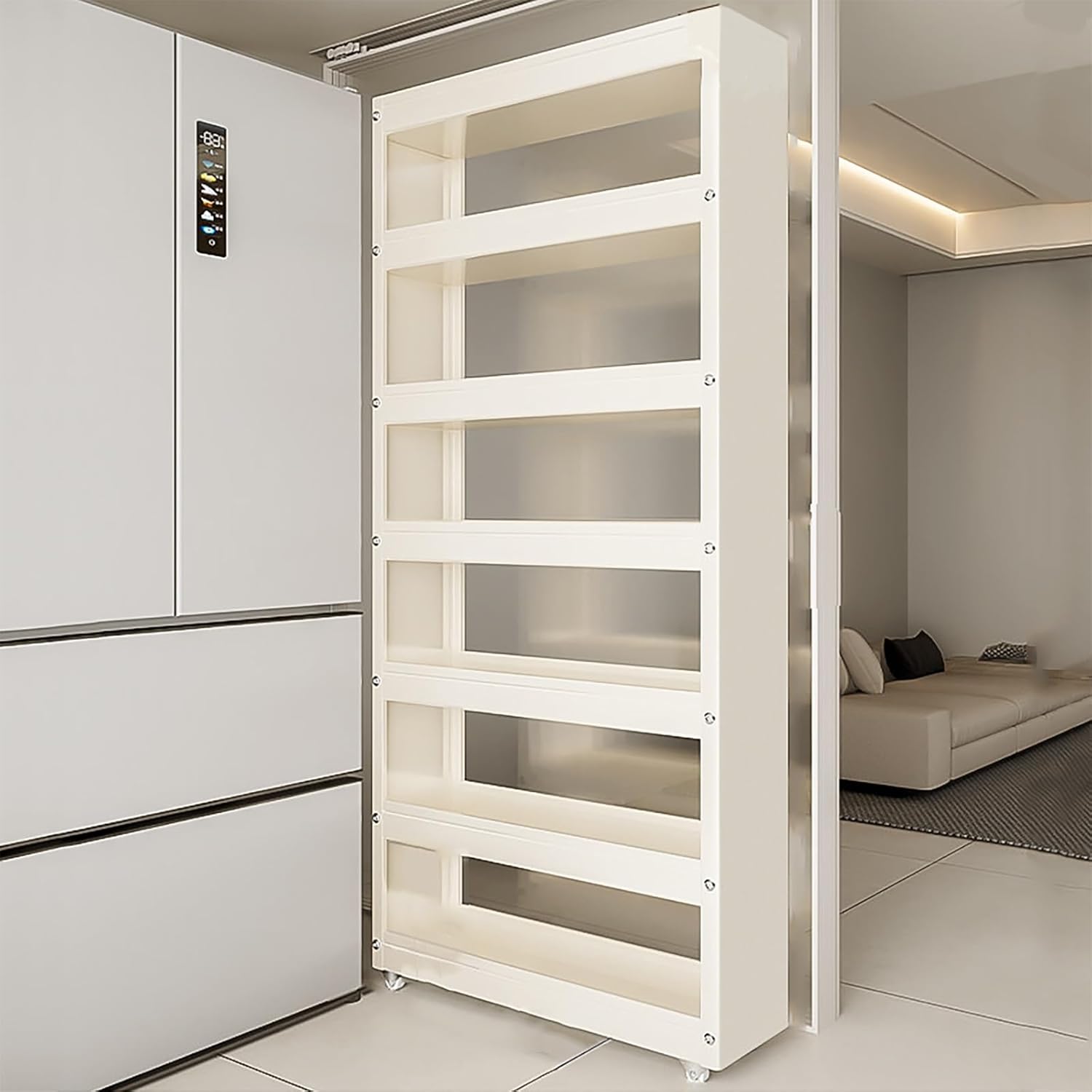 Slim Storage Cart, Pull Out Kitchen Gap Organizer, Rolling Narrow with Wheels, Carbon Steel Multi Tier for Refrigerator Side, Bathroom, Laundry Room(White,15.7 * 7 * 27.5in)