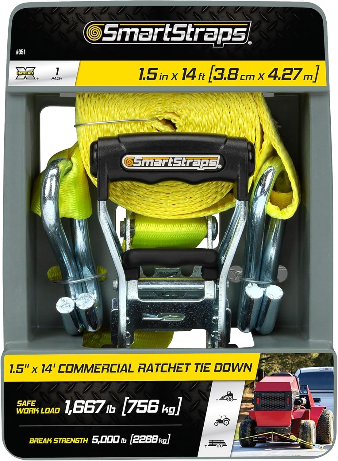 | Included Components | 1 × 14-Foot SmartStraps Commercial Ratchet Tie-Down Strap with Ratchet Mechanism and J-Hooks |