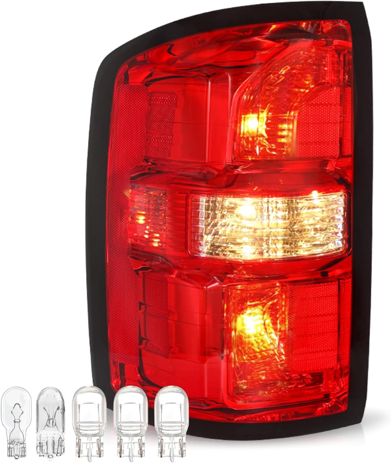 • 💡【BRIGHTER LIGHTING & SAFETY REFLECTOR】Metal parabolic reflectors provide more light output for wider, smoother beams. Side microprism reflectors let oncoming vehicles or passersby quickly notice you at night, keeping you and others safe while driving.Bulbs Information: BRAKE LIGHT:7444LL(INCLUDED), TAIL LIGHT:7444LL(INCLUDED), TURN SIGNAL LIGHT:7444LL(INCLUDED),BACK UP LIGHT:921(INCLUDED),Side Marker Light:194(INCLUDED).