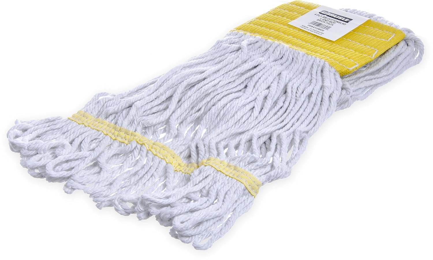 Introducing the Flo-Pac Medium Green Band Looped End Mop - the perfect cleaning tool for commercial and industrial settings. This mop features a 5" wide color coded headband, making it easy to organize and identify among your cleaning supplies. The looped end design provides larger floor coverage, allowing you to clean more effectively and efficiently. Made from a highly absorbent 4-ply cotton blend, this mop is perfect for tackling spills and messes of all sizes. It is also durable and heavy duty, designed to withstand frequent use in high traffic areas. This mop is available in two colors, allowing you to choose the one that best suits your needs. The Flo-Pac Medium Green Band Looped End Mop is a reliable and effective cleaning solution for any commercial or industrial space. Model number: 369418B05.