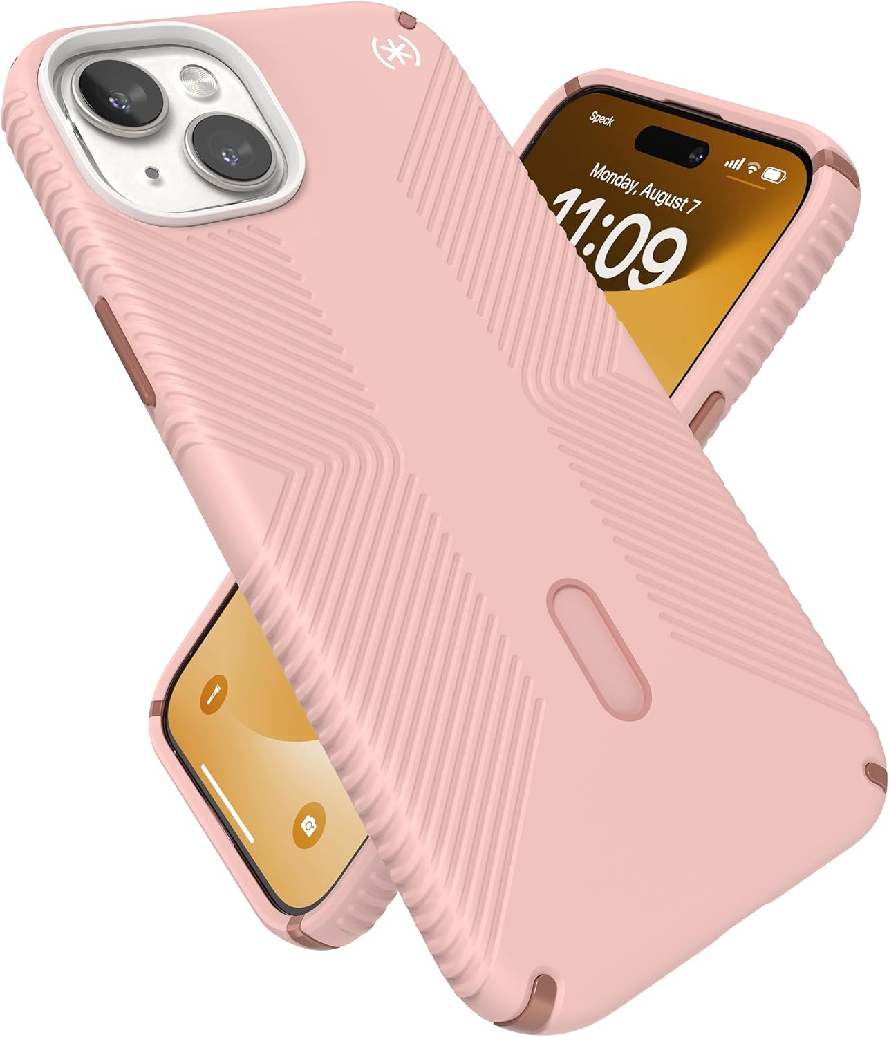 Presidio2 Grip is a super protective and pocket-friendly case that has a soft-touch finish for ultimate comfort plus newly innovative no-slip inverted grips. With great longevity, durability and a strong grip, this case provides more confidence when texting, talking, or taking photos. Now 20% slimmer, this durable case is designed with precise magnets built specifically for Apple MagSafe accessories. Not only is this case stylish, but Presidio2 Armor Cloud Technology makes it tough for rough moments. We’ve lined the perimeter of every case with air capsules. On impact, they compress and suspend your phone on a cushion of air, just like an airbag. These cases have been tested in the real world to withstand drops of up to 13 feet, so you’ll be confident knowing your phone will be protected. For ease of use you can feel, experience a precise fit tailor-made for your device with the addition of enhanced ultra-responsive buttons for smoother clicks and volume control. If that wasn’t enough, it also features our raised bezel. This added edge helps protect your screen from scratching and shattering if, and/or when your phone falls and lands face-down. Speck’s revolutionary new ClickLock no-slip interlock and accessories make using iPhone and MagSafe even better! This case features a recessed receptacle that perfectly matches to the extendable bolt built into Speck ClickLock accessories. This strong two-part design ensures your ClickLock Car Vent Mount, Wallet, and Viewing Stand stay securely fastened to your phone.