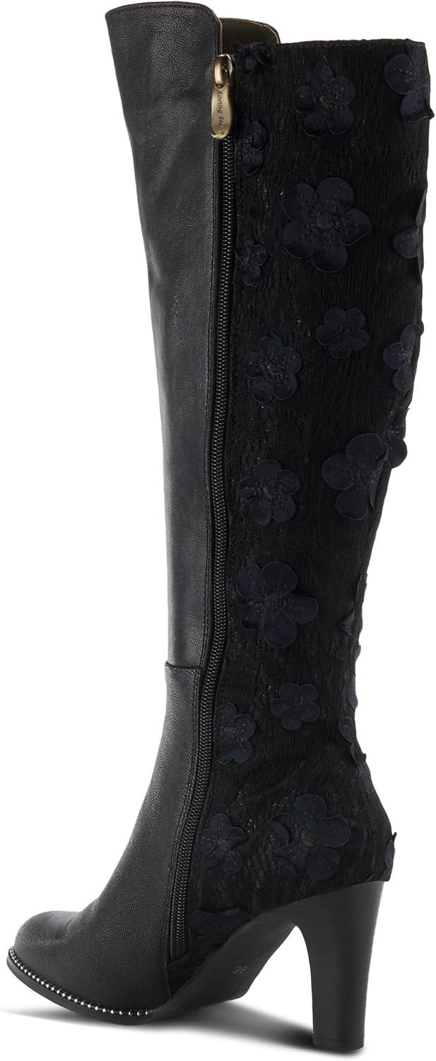 Make a bold yet feminine statement with the L'Artiste Rozena Boots, a beautifully crafted mid-calf design that combines delicate floral appliqués and intricate lace details for a uniquely elegant look. The studded welt design along the sides adds a touch of edginess and attitude, making these boots the perfect fusion of romance and rebellion. With a comfortable mid-heel height, these boots provide versatility and all-day comfort, whether you're dressing up or down. Designed with a convenient side zipper, they offer effortless wearability, while the flexible rubber outsole ensures stability with every step.