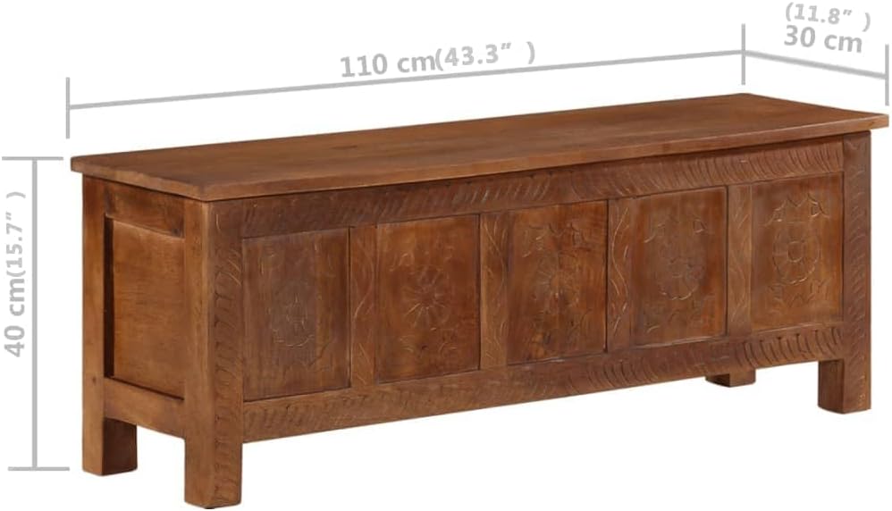 This wooden storage box exudes a rustic charm. It will make a truly captivating addition to your interior.The TV cabinet is made of solid mango wood, a hardwood with dense grains. Rough mango wood not only has the strength to bear the weight, but also stands the wear and tear of time. As a consequence, this beautifully-designed sideboard is exceedingly stable, durable and attention-grabbing. Additionally, this stereo cabinet is fully handmade and the aesthetically-appealing wood grains make every piece of furniture distinctive and slightly different from each other. This decoration box features 1 cabinet, providing ample space for storing your multimedia appliances, books, shoes, as well as various other items.Important note: The wood grains vary from piece to piece, making each piece unique; the delivery is random.Material: Solid mango wood, MDFDimensions: 43.3" x 11.8" x 15.7" (W x D x H)Finish: Polished and lacqueredWith 1 cabinetAssembly required: Yes
