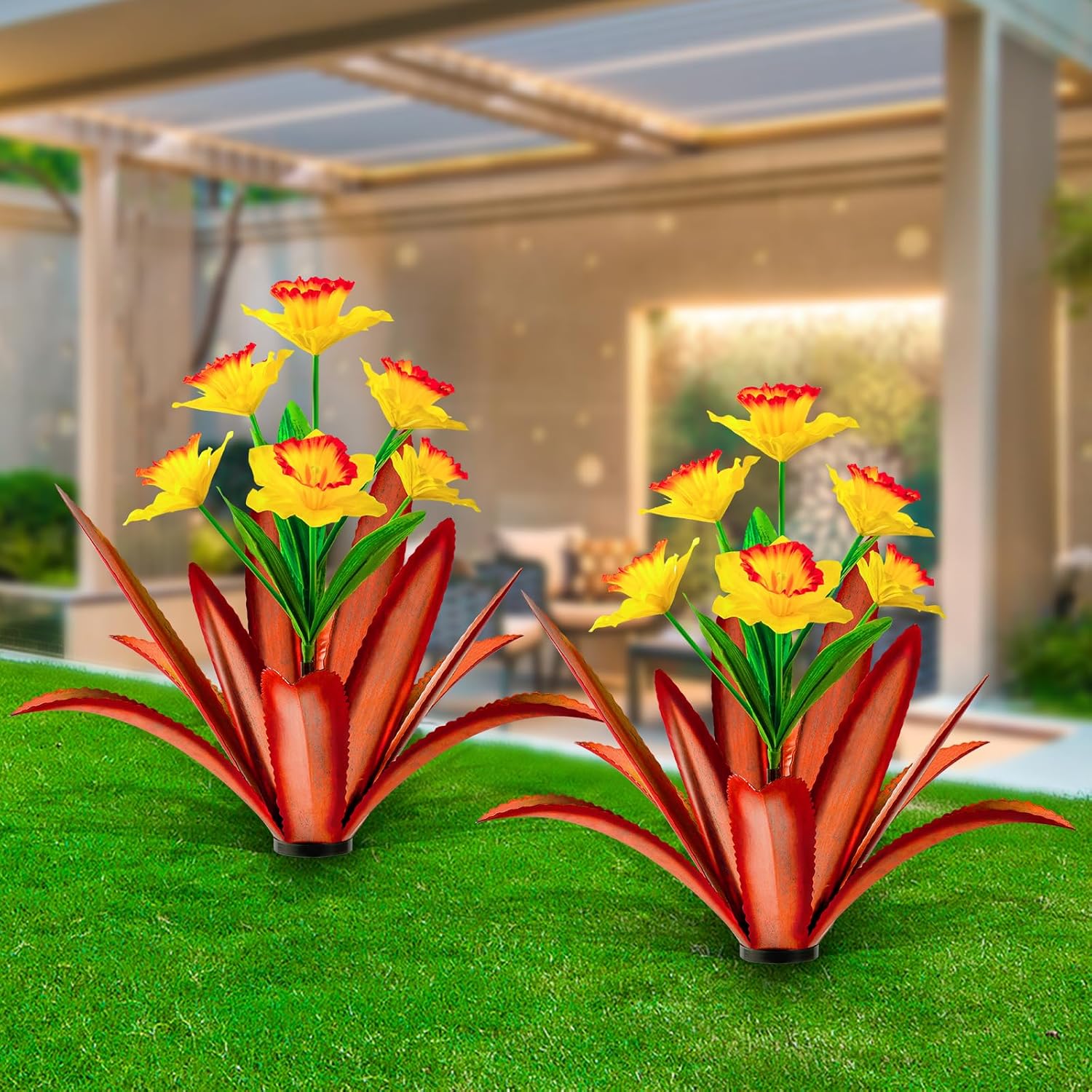 【 Metal agave 】 This is a rust style metal agave made of stainless steel metal and coated with a waterproof coating to prevent rust, creating a very unique juxtaposition of a variety of beautiful and lush leaves you'll find in the spring.