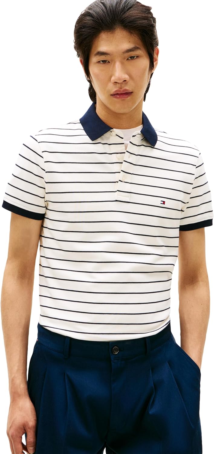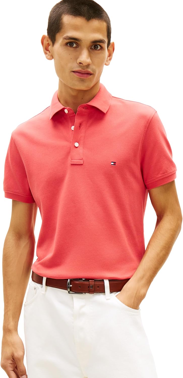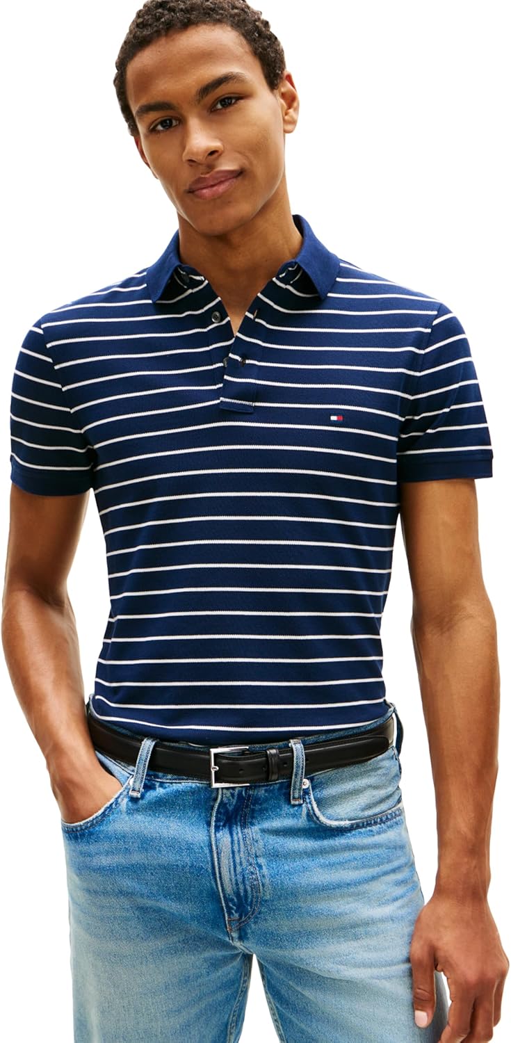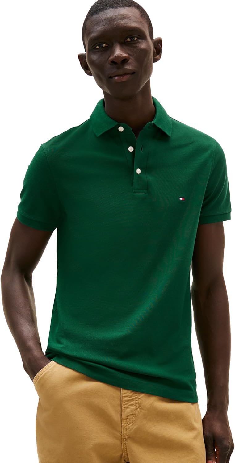 Introducing Tommy Hilfiger's iconic polo shirts for men, crafted from premium organic cotton and stretch fibers for optimal shape retention and comfort. Renowned for its timeless cut, sharp aesthetic, and comfortable fit, this best-selling polo remains a staple year after year. Tommy Hilfiger's polo shirts boast a blend of premium cotton and stretch fibers, making them the go-to choice for men seeking both style and functionality. Perfect for golfing with its natural breathability and stretch, this polo offers unparalleled comfort on and off the course. Designed with a slim fit that's slim through the chest and shoulders, this button-down polo exudes a casual yet polished look. Pair it effortlessly with your favorite Tommy Hilfiger shorts, pants, jeans, or jackets for versatile styling options suitable for any occasion, whether it's a casual outing or a formal event. Ideal for daily wear, work, school, events, vacation, or sports like golf and tennis, this men's polo is a wardrobe essential. Treat yourself or surprise a loved one with this timeless piece, perfect for fathers, brothers, boyfriends, husbands, sons, or friends. Elevate your everyday style with the unbeatable quality and sophistication of Tommy Hilfiger's men's polo shirts.