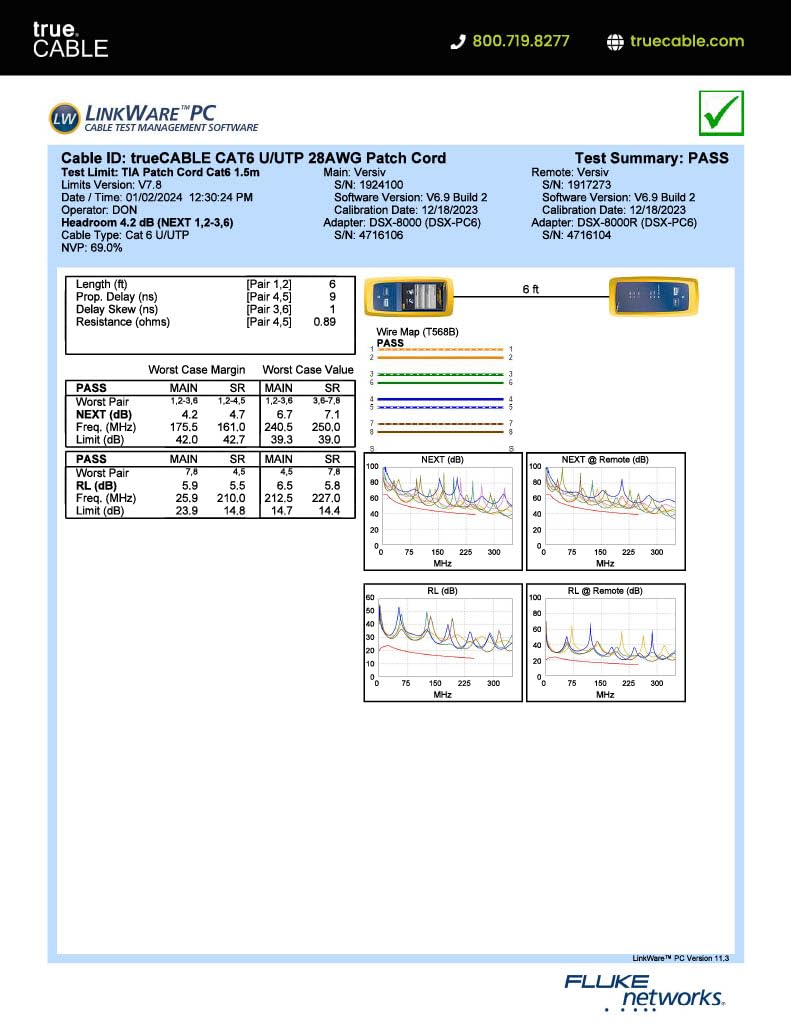 • [✓ Field Tested, Customer Approved] Our data cables have been tested with a Fluke DSX-8000 Versiv CableAnalyzer and are in compliance with ANSI/TIA 568.2-E standards, RoHS-3 compliant, and cETLus certified. Backed by our outstanding customer support.