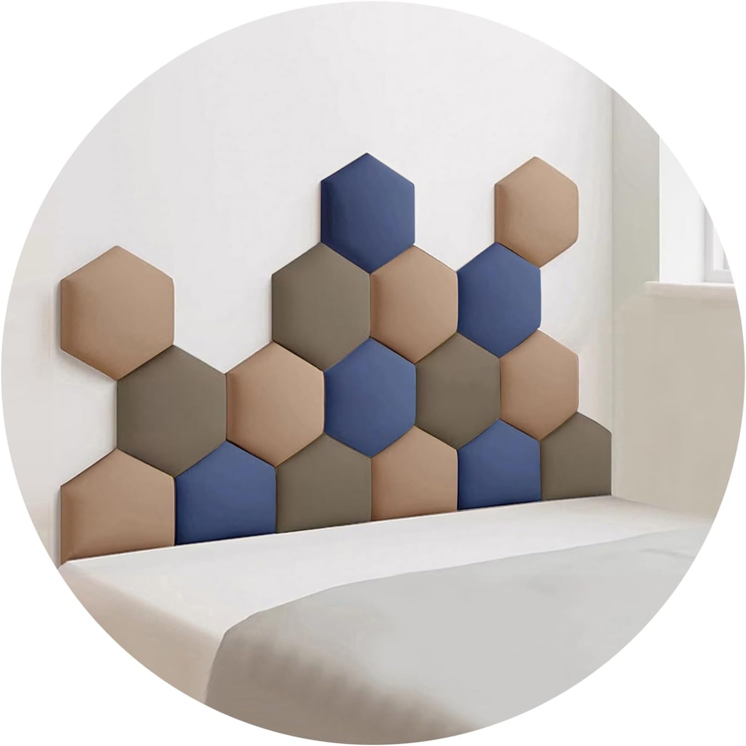 Our headboard wall panels are designed with three different colors mixed and matched. You can freely arrange them according to your preferences, give full play to your creativity, make DIY designs, and create a more exquisite background wall.Specifications:Type: Upholstered Wall PanelMaterial: Technical cloth fabric, 45D high resilience sponge, E0 grade MDFThickness: 3cm/1.18inchOverall size:120x70cm (consisting of 17 wall panels)150x87cm (consisting of 17 wall panels)180x105cm (consisting of 17 wall panels)Tips:1. Due to the shooting environment, and different screen settings, the displayed color may be slightly different from the final color of the product.2. Dust on the wall should be removed before installation. Make sure the wall is clean and dry to ensure a secure fit.3. If you want to stick it on a textured wall, we recommend using mounting adhesive for reinforcement. (Mounting adhesive must be purchased separately)Customer Service:If you have any concerns or questions before or after your purchase, please feel free to contact us. We will respond within 12 hours and help you.
