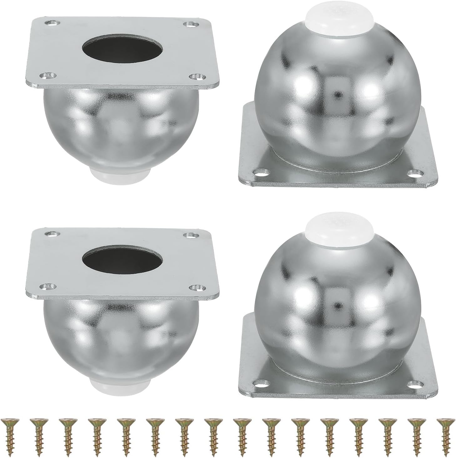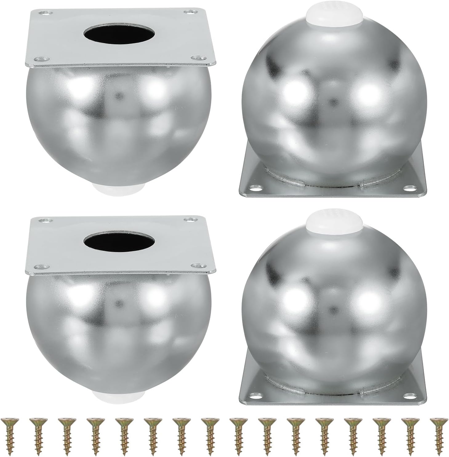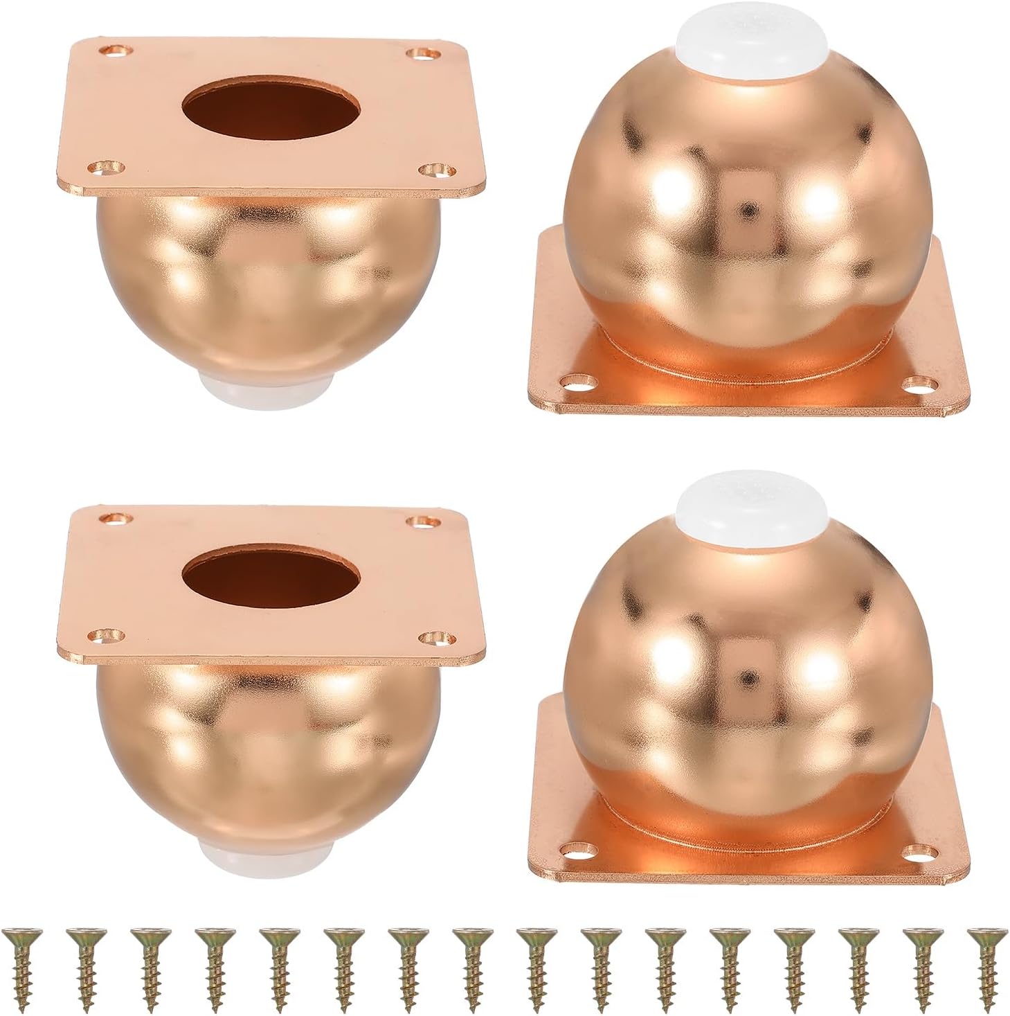 Description: Heavy Duty Structure - These metal furniture legs are made of carbon steel with multi-layer oxidation treatment on the surface, which is not easy to lose paint and durable for long time use.Stylish & Functional – These orb furniture legs double as decorative accents, adding a touch of luxury while providing sturdy support. Their sleek round design instantly upgrades any furniture into a stylish statement piece.Stable Anti-Wobble Design - These legs for furniturefeatures countersunk holes and thickened cover plates for a tight, rattle-free fit with smooth burr-free edges, delivering ultra-strong load-bearing support. Includes non-slip rubber pads that effectively absorb vibration noise, reduce furniture movement friction, and provide all-around floor surface protection.Universal Fit for Multiple Furniture Types – These replacement legs for furniture are designed to upgrade loveseats (enhanced stability), ottomans (smooth gliding), dressers (even weight distribution), cabinets (prevents door sagging) and so on. Comes with installation screws for quick attachment to most furniture bases – no professional assistance required. Specification: Color: Rose GoldMaterial: MetalSize of Base: 90mm x 90mm/3.54" x 3.54" (L x W)Height: 100mm/ 3.94"Hole Pitch: 76mm/2.99"Diameter of Hole: 6mm/0.24"Package Content: 4Pcs x Metal Furniture Legs + 16Pcs Screws