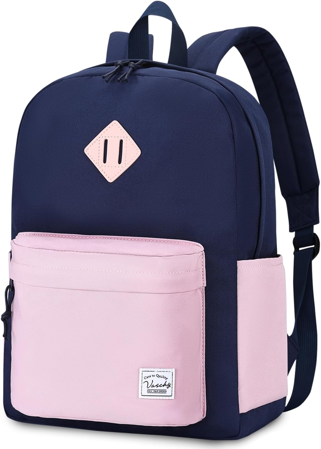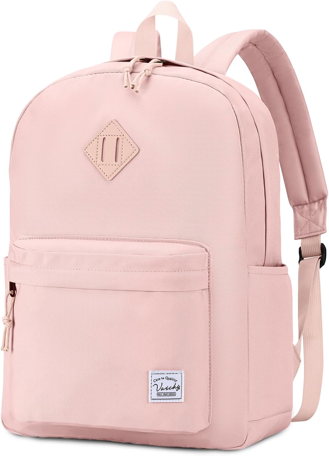 VASCHY Lightweight Backpack for School, Water Resistant Classic Bookbag with Side Pockets for Girls,Kids,Teens Beige