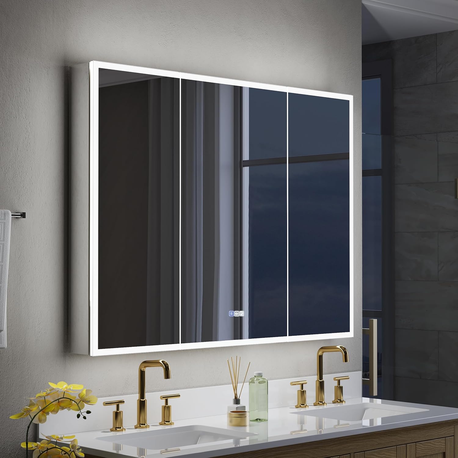 • Premium Materials: Made from anodized aluminum, the WELLFOR 48"x30" LED medicine cabinet (Three doors opening) features a waterproof, copper-free silver mirror and a tempered glass back for safety and style.