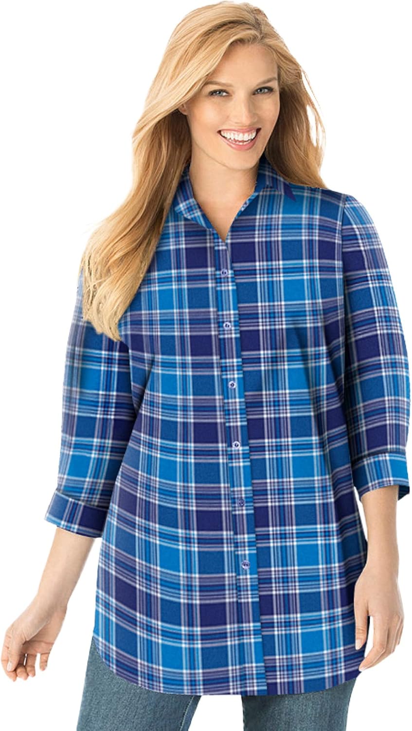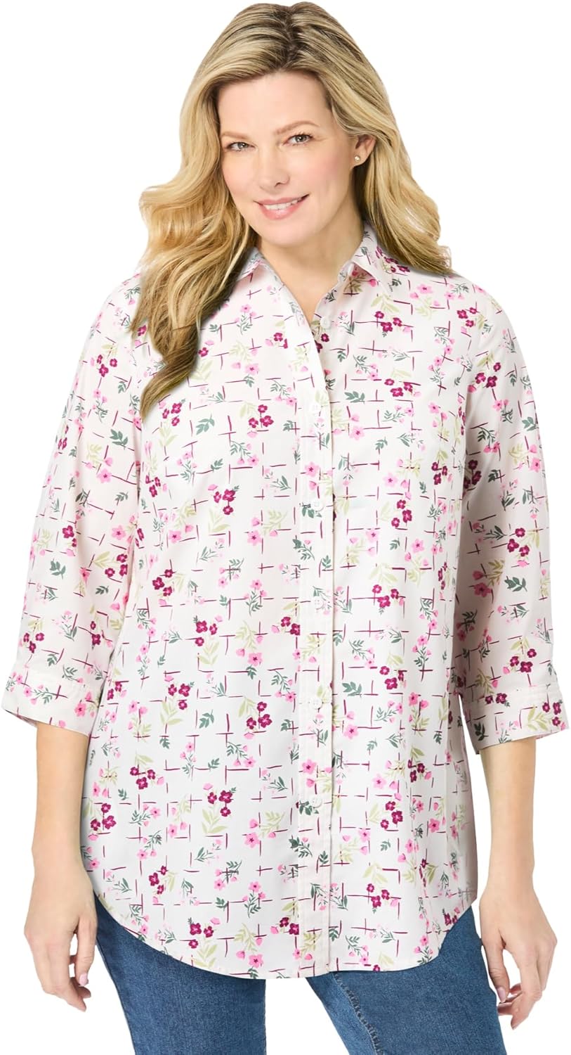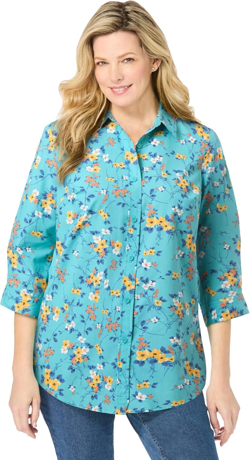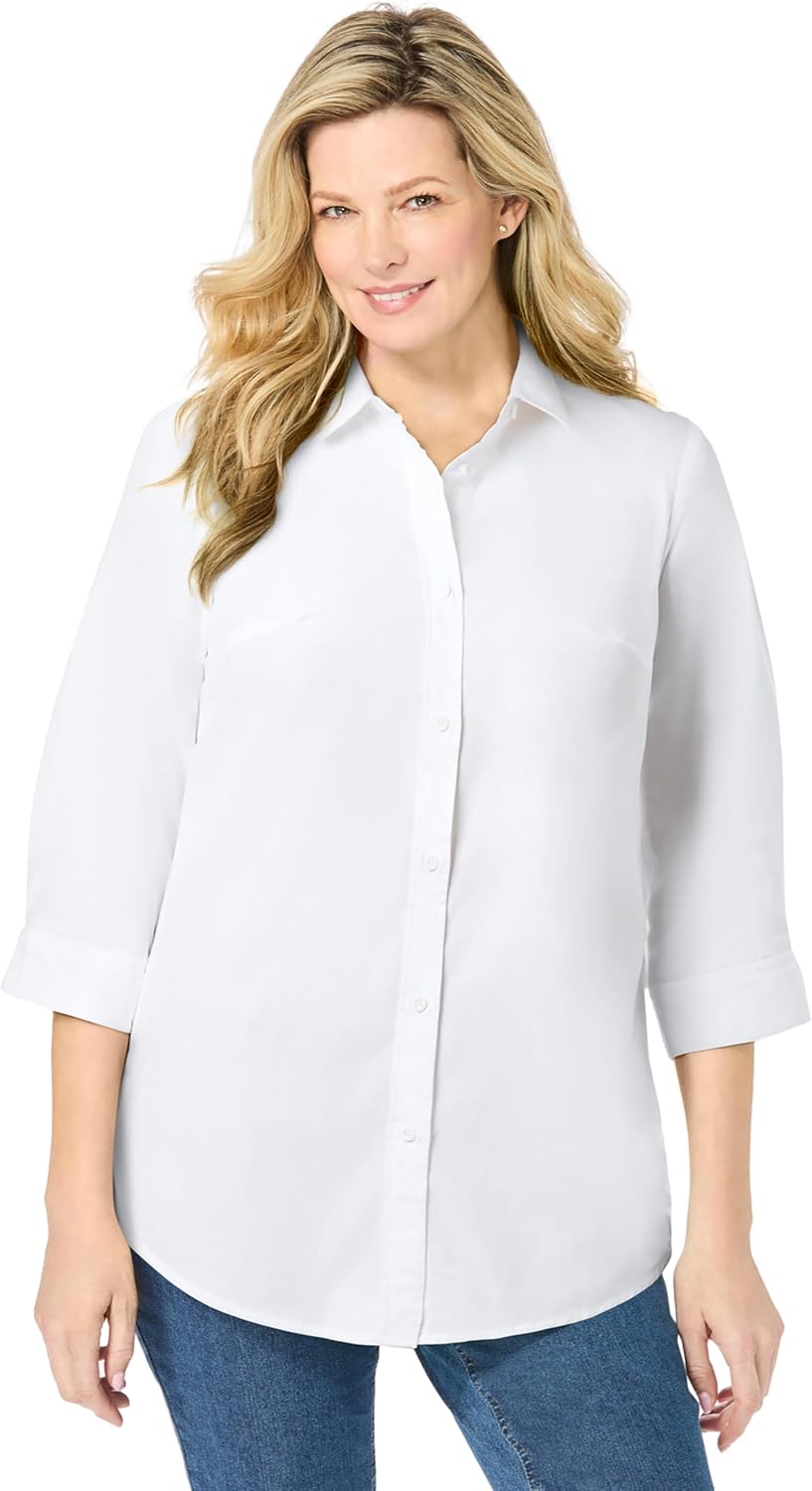 br>Experience ultimate comfort with our best-loved perfect shirt, designed with a three quarter sleeve, relaxed fit and classic tunic length for comfortable coverage. br> Enjoy easy maintenance with wrinkle-resistant and easy-care fabric. br> Stay polished with the stylish shirt collar and button-front design. br> Perfect for any occasion, thanks to the versatile 30" tunic length. br> Crafted from a breathable cotton/poly blend, ensuring all-day comfort. br> Find your ideal fit with sizes ranging from M to 6X, embracing body positivity and inclusivity.