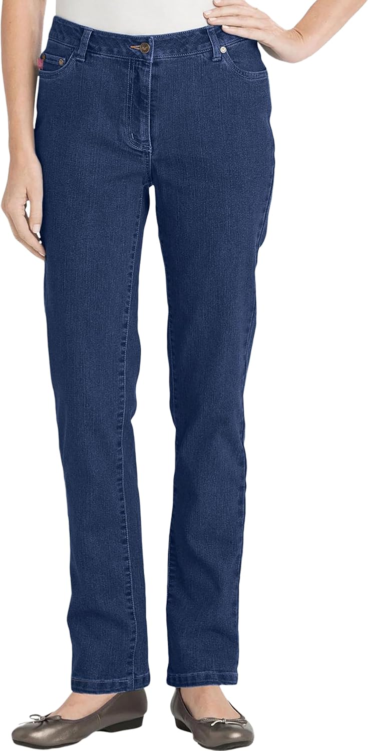 These classic five-pocket jeans are made from soft stretch cotton for a great fit that moves with your body. A slim jeggings cut pairs with your favorite statement shoes effortlessly. Our special stretch blend hugs your curves comfortably, achieving a feminine shape. The zip fly front secures with a jean tack button. Designed with a slim fit that enhances your curves. br> Crafted from stretch cotton for ultimate comfort and flexibility. br> Five-pocket styling adds a classic touch, perfect for everyday wear. br> Zip fly and button closure provide a secure fit with easy wearability. br> Perfect for transitional weather, offering just the right amount of coverage. br> Zip fly and button closure provide a secure fit with easy wearability. br> Sits comfortably at the waist, offering a flattering silhouette. br> Available in varied lengths: Average (29" inseam), Petite (27" inseam), Tall (33" inseam). br> Durable cotton/poly/spandex blend for lasting quality. br> Easy care, machine washable for your convenience. br> Imported