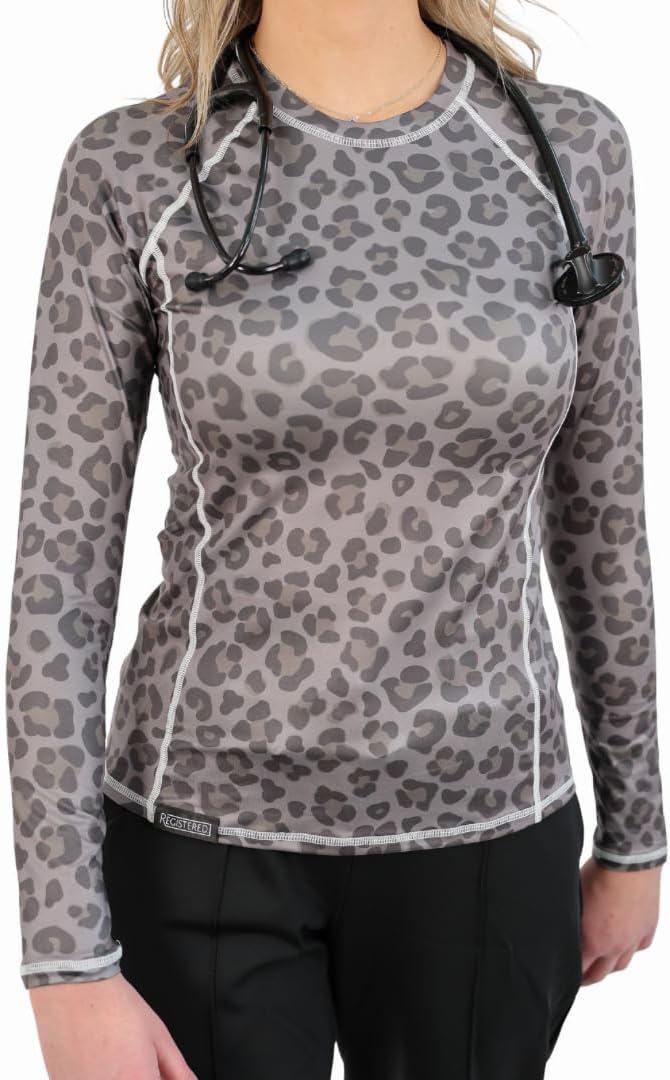 Experience unmatched comfort, style, and performance with "REGISTERED." Premium Underscrub Top, designed for professionals who demand more from their workwear. Perfectly suited for layering as underscrubs or wearing on its own, this long-sleeve top is crafted from a premium four-way stretch fabric that offers unrestricted movement and a tailored slim-fit silhouette for a polished, modern look. Stay comfortable and confident with our moisture-wicking, quick-dry fabric, designed to keep you fresh and dry during even the longest shifts. The lightweight, breathable material ensures all-day comfort, while the seamless construction minimizes irritation and maximizes durability. Each shirt features unique designs to reflect your personality while maintaining a professional appearance. Whether you're working long hours or relaxing afterward, this underscrub is as hardworking and stylish as you are. Elevate your scrubs with the perfect blend of practicality and flair.