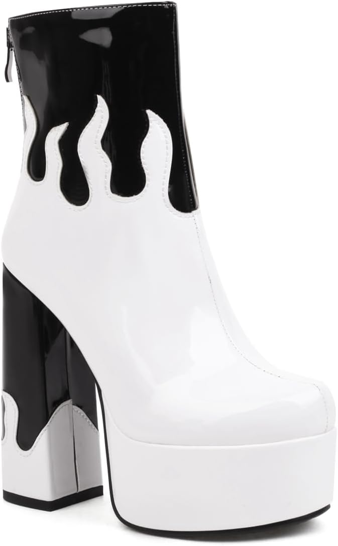 Chunky Platform High Heel Ankle Boots For Womens Round Toe Buckle Size Zipper Winter Dressy Short BootieSize Chart:Size 4 US = EU34 = Heel to Toe 22.0cm/8.66"Size 4.5 US = EU34 =Heel to Toe 22.0cm/8.86"Size 5 US = EU35 = Heel to Toe 22.5cm/9.06"Size 5.5 US = EU36 = Heel to Toe 23cm/9.06"Size 6 US = EU37 = Heel to Toe 23.5cm/9.25"Size 6.5 US = EU37 = Heel to Toe 23.5cm/9.25"Size 7 US = EU38 = Heel to Toe 24cm/9.45"Size 7.5 US = EU39 = Heel to Toe 24.5cm/9.65"Size 8 US = EU39 = Heel to Toe 24.5cm/9.65"Size 8.5 US = EU40 = Heel to Toe 25cm/9.84"Size 9 US = EU41 = Heel to Toe 25.5cm/10.04"Size 9.5 US = EU42 = Heel to Toe 26cm/10.24"Size 10 US = EU42 = Heel to Toe 26cm/10.24"Size 10.5 US = EU43 = Heel to Toe 26.5cm/10.43"Size 11 US = EU44 = Heel to Toe 27.0cm/10.63"Use your length and width measurements to find your shoe size on the above size chart. If your foot is fat or wide, please select a bigger size up.PERFECT ITEM FEATURES:☛Item Type: Ankle-boots☛Main Material: High Quality Patent Leather upper; Comfort Velvet Lining; Non-skid Rubber sole.☛Closure_type: Back Zipper☛toe_style: Round toe☛Heel Height: Heel Height 5.9 inch☛Width: Medium (BM)☛Season: Spring/Autumn/Winter☛Color: Multiple colors optional☛Occasion Lifestyle: Fashion,Classic,Casual.