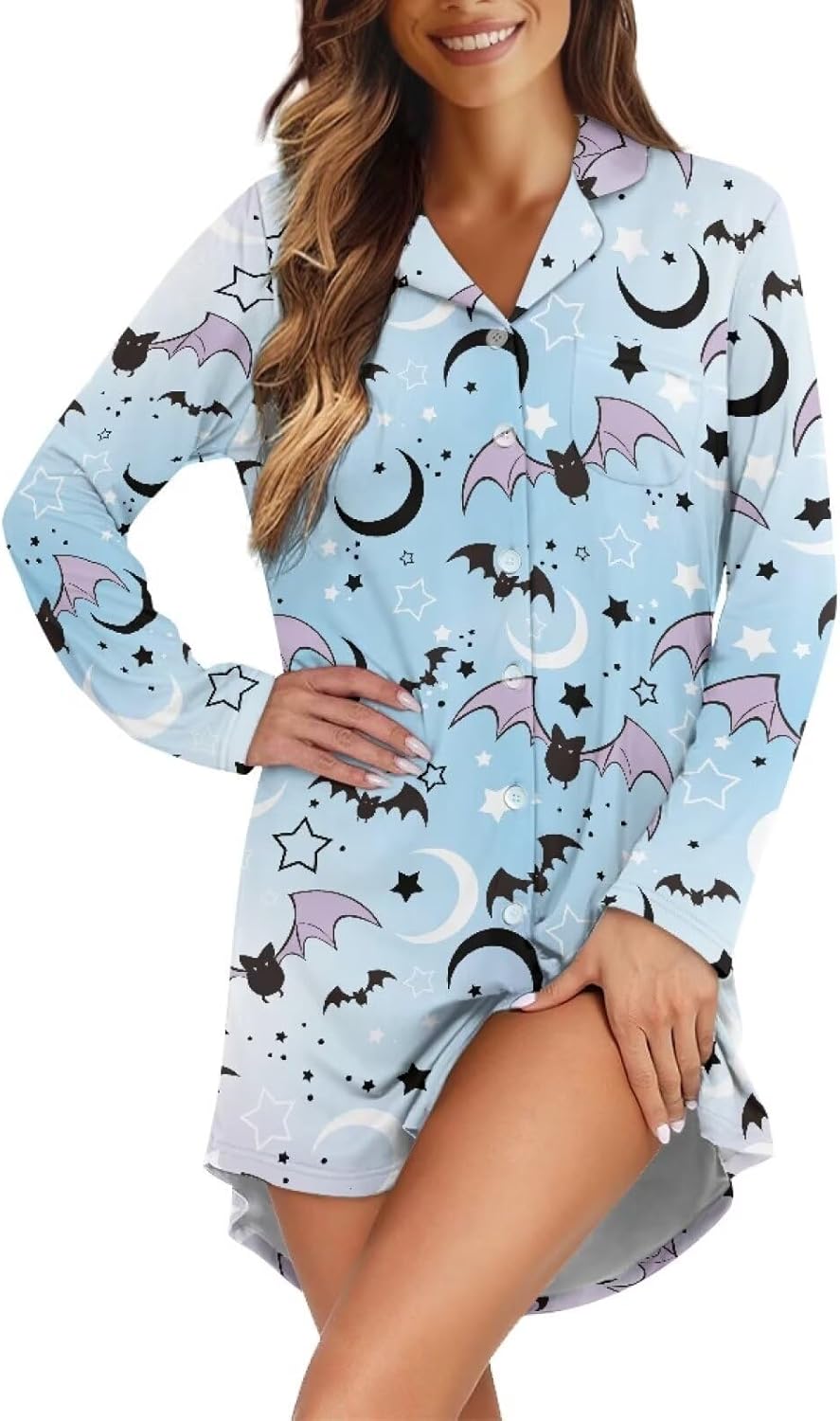 Spowatriy Women's Long Sleeve Button Nightdress : -Womens casual nightgown,v neck boyfriend nightshirt,skin-friendly,not easy to fade and shrink.Soft and comfortable, lightweight and breathable. -Long sleeve,button pajama dress sleepshirt for women,lapel v neck,classic design loungewear with breast pocket.Everyday Style,suit for most body curves and all seasons. Also can be nursing nightgowns/maternity nightgowns. -Various eye catching prints patterns for you to choose, which will never go out of style.It is a must-have loose full button nightgown for your wardrobe!Make you look more elegant and charming. Size :5 sizes for you to choose:S/M/L/XL/2XL,Please check our size chart and product details carefully before placing an order. Full Button Nightdress Long Sleeve Sleepshirt with Pocket for Women : Suitable for pajama party/ girls day/ honeymoon/ bridal pajamas/ travel/ wedding party/ birthday nightgown/Christmas /New Year/Valentine nightgown/costume party, and daily sleepwear.Easy to put on and take off.Wearing it you will want to start a romantic journey! Welcome to Spowatriy! Choose us and trust us! We have many types of products for you to choose from,If you have any questions about our products, please feel free to contact us. We will spare no effort to solve your problem.