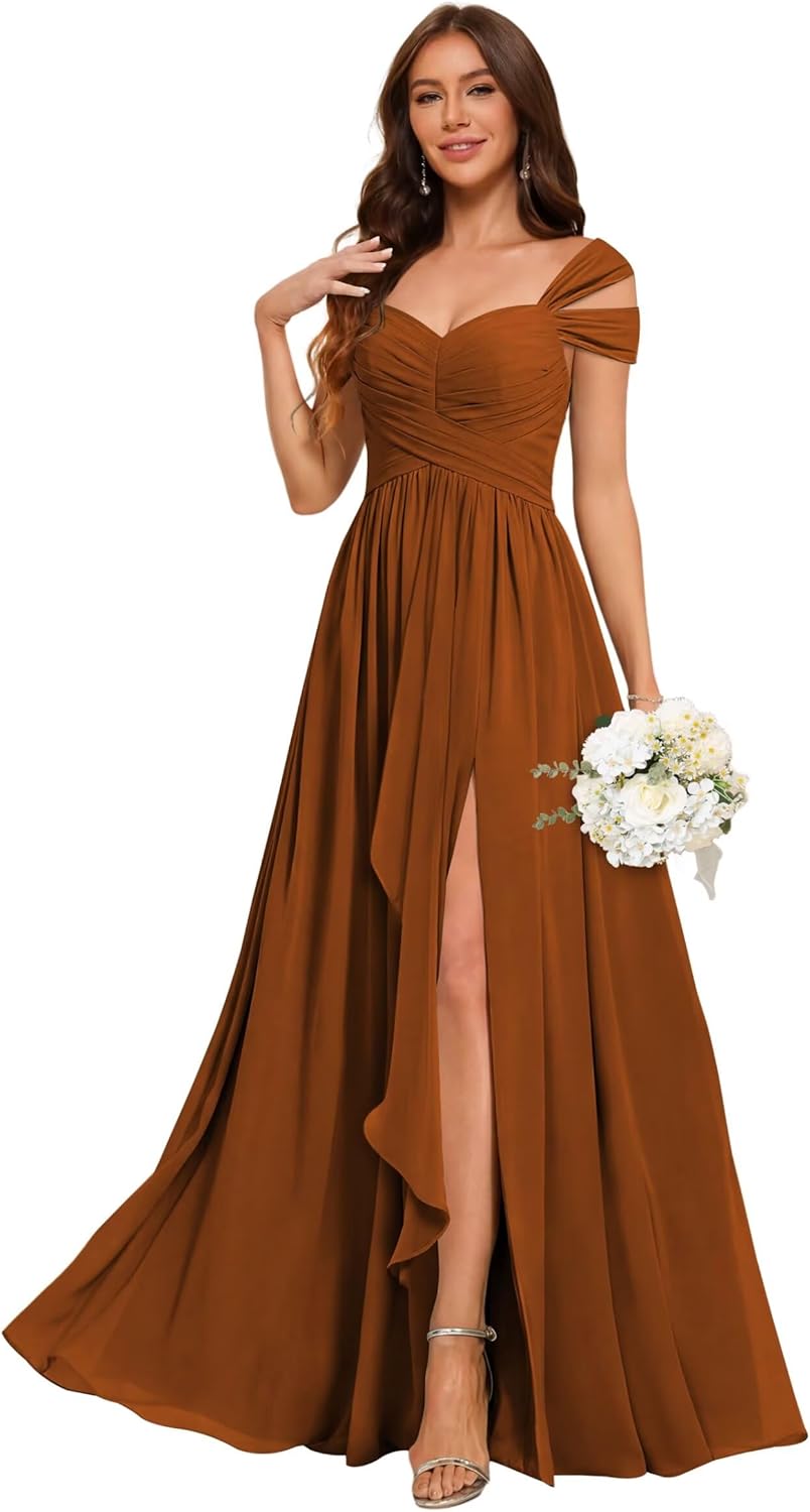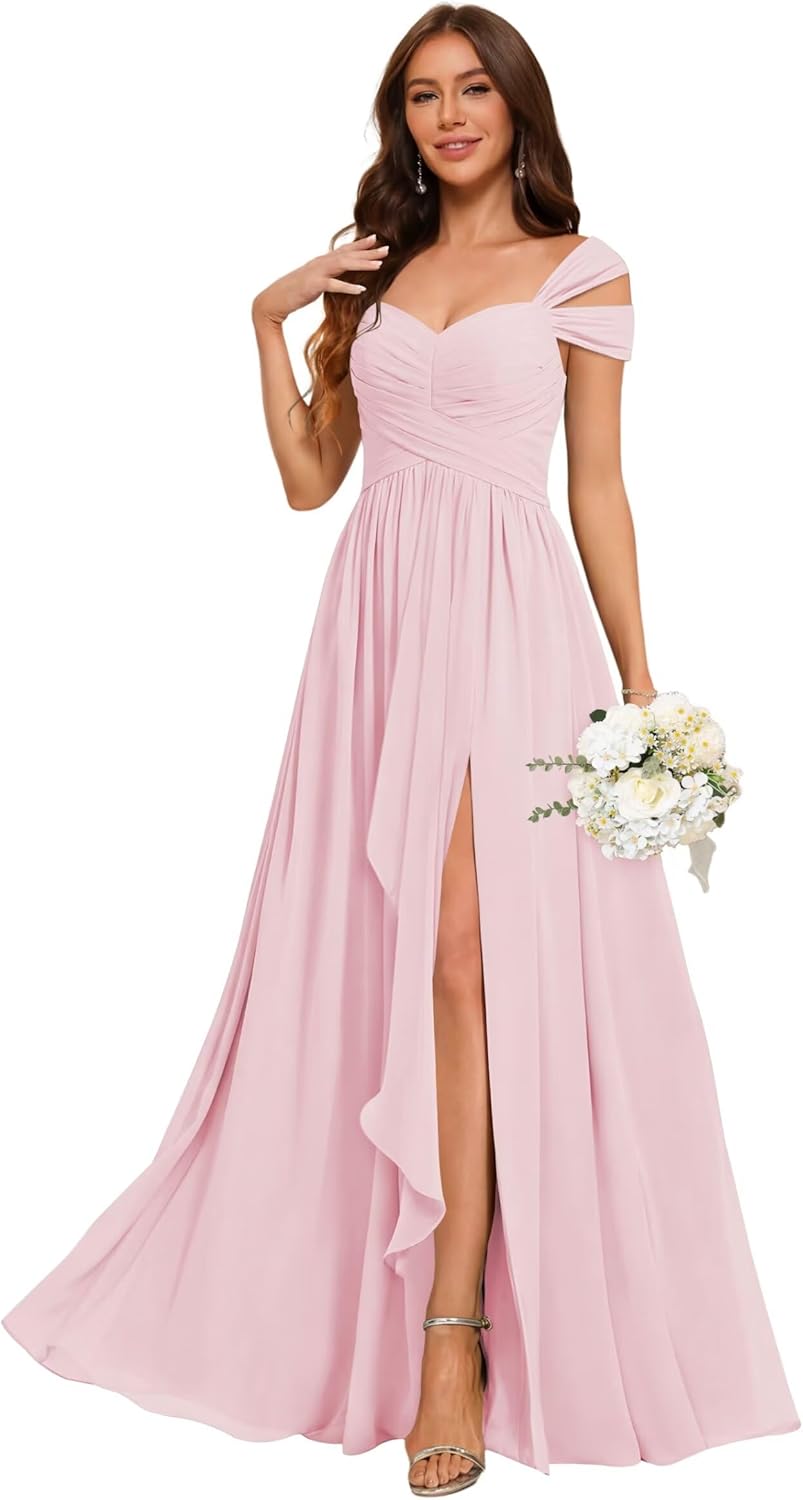 Welcome to AKMESXAY! We offer high-quality wedding dresses, bridesmaid dresses, wedding guest dresses, formal evening gowns, and other special occasion attire. Shop with complete confidence—we’re here to serve you with pleasure. Elegant Chiffon bridesmaid dresses for women Features: Fabric:Chiffon Features: Off the Shoulder A Line Pleated bridesmaid dresses with Slit,Elegant Floor Length Formal Dresses for Women with Pockets,High Quality Chiffon Fabrics Formal Evening Gown for many Special Occasions . Sleeves:Sleeveless Silhouette: A Line Back Design:Drawstring How to choose size: Measure your body and compare it with our size chart. If you want a more accurate fit, please send us your measurements as follows: 1. Bust___inches or___cm 2.Waist___inches or___cm 3.Hips___inches or___cm 4.Hollow to floor ___inches or___cm 5.Height(without shoes)___inches or___cm 6.The date you need the dress:____ How to contact us: We provide customers with 24 - hour online consultation service. If you need any help, you can contact us at any time.