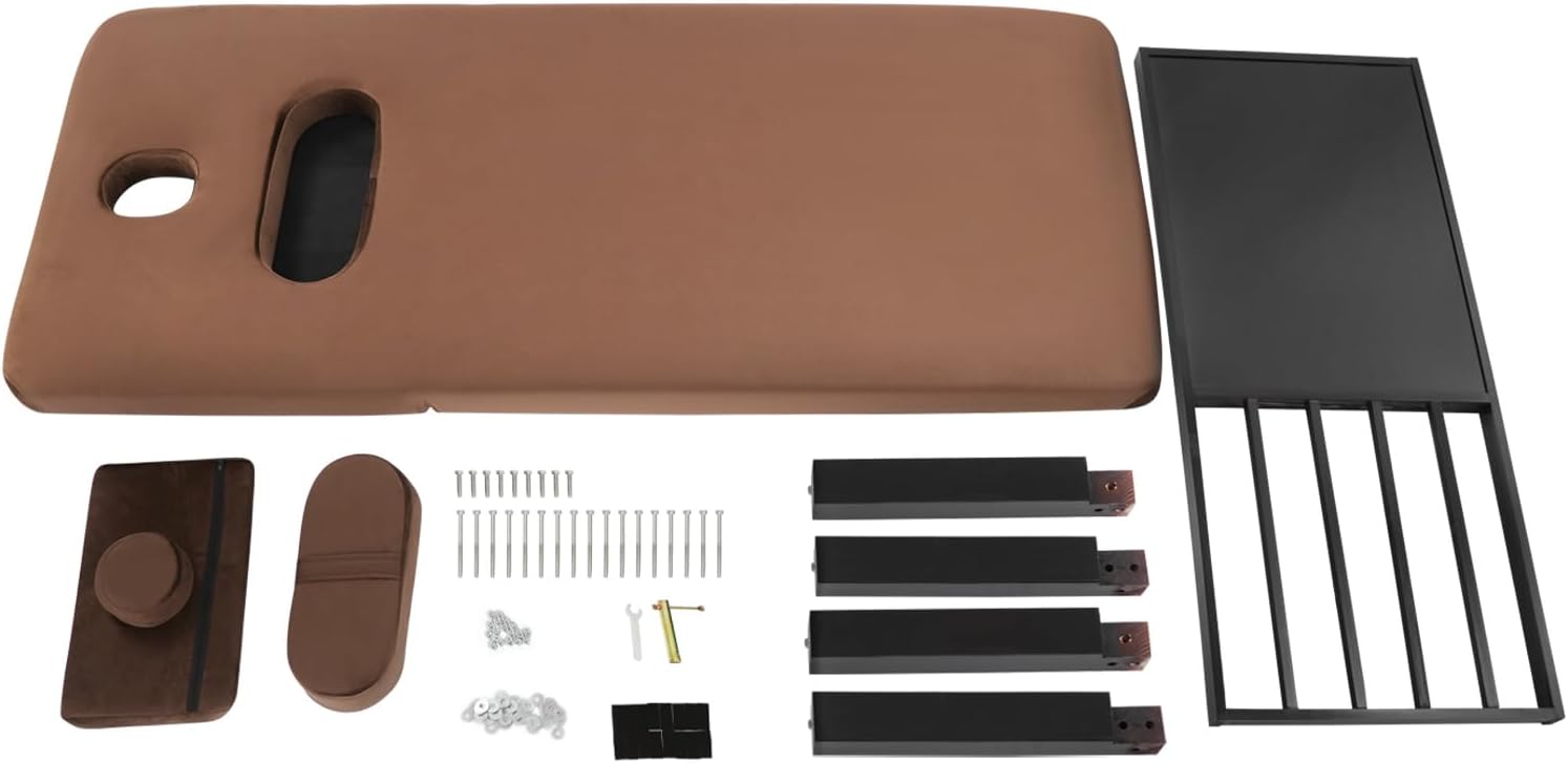 Description This massage bed is made of premium solid wood, is sturdy and durable, and has a simple and elegant appearance. The soft and comfortable velvet fabric with a delicate touch that can provide customers with the ultimate comfort experience. The overall design conforms to ergonomic principles, ensuring that customers can maintain comfort while enjoying beauty services. This product is an ideal choice for beauty salons. Details Storage Rack: It provides you space to place items or tools needed for beauty or massage, making it convenient for you to access them at any time. Rounded Corners: This design can effectively prevent you from bumping and scratching during use, improving safety and comfort. Application This product is suitable for beauty, hairdressing, spiritual treatment, rehabilitation, massage, physical treatment, pedicure shops, leisure clubs, nail salons, health clubs, seat SPAs, etc. Specification Material: Solid Wood, Sponge, Velvet Cloth Color: Wood Color, Grey Process: Varnishing Style: Modern Shape: Rectangular Assembly Required: Yes Mounting Type: Free Standing Backrest Adjustment Angle: 0-45° Number of Bed Legs: 6 Sponge Thickness: About 90mm/3.54in Product Size: 190*80*62cm/74.8*31.5*24.4in Max. Load Capacity: About 400kg/881.85lbs Package Size: 192*82*18cm/75.59*32.28*7.09in Gross Weight: 38kg/83.78lbs Net Weight: 36.1kg/79.59lbs Package Included 1* Massage Bed 1* Pillow Other Accessories for Assembly Notes 1.Please note that the cushion cover cannot be removed. Please allow the slight color difference caused by the shooting light and 1-3cm error due to manual measurement, and make sure you do not mind before ordering.