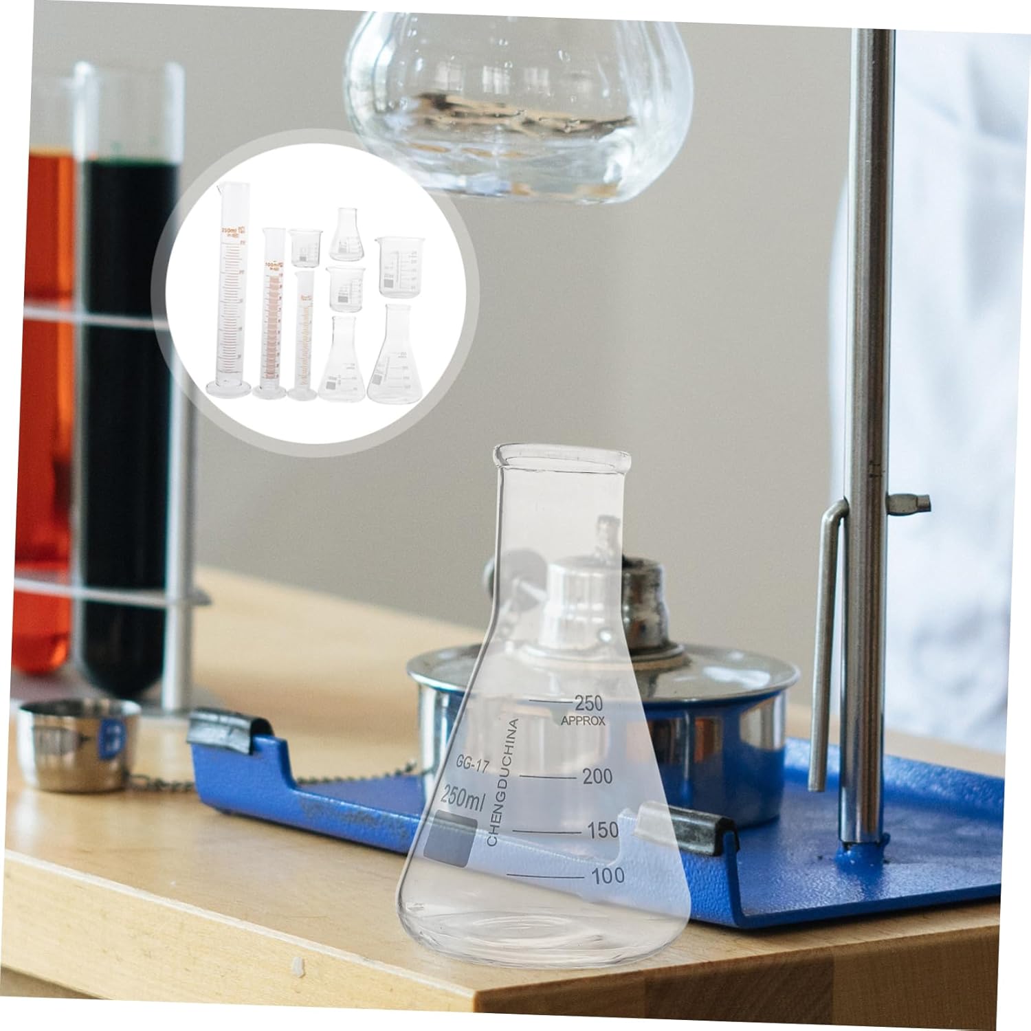Package List 3 x glass beakers 3 x measuring cylinders 3 x conical flasks Characteristics - Capacity of measuring cylinder: 50ml, 100ml, 250ml Glass Graduated Cylinder. - Material: Glass Glass Measuring Cylinder. - Capacity of glass beaker: 50ml, 100ml, 250ml Measuring Cup Set. - Size: 30.50X7.00X7.00cm/11.99X2.75X2.75in Graduated Measuring Cup - Capacity of conical flask: 50ml, 150ml, 250ml Measuring Cylinder. - ColorTransparent Measuring Cup - Suitable for beginners or use, also the students, convenient classroom glass conical flasks Laboratory Beaker. - Each scientific labs tool is printed with clear scale for accurate measuring Laboratory Measuring Device. - Heavy duty glass uniform wall thickness distribution, and Conical Bottle. - Made of solid thick glass and have a good feeling. Reusable and solid , not easily broken Graduated Beaker. - The good glass conical flask and beaker have high durability and low thermal expansion Measuring Cup with Scale.Goods DescriptionGlass Graduated Cylinder Clear scale for more accurate measurement.Laboratory Measuring Device They are equipped with scale, for you to check more conveniently.Conical Bottle The cylinder and beaker and conical flask set is made from glass, acid and alkali , and to use.Laboratory Conical Flask Widely used in schools, , scientific laboratories and other fields