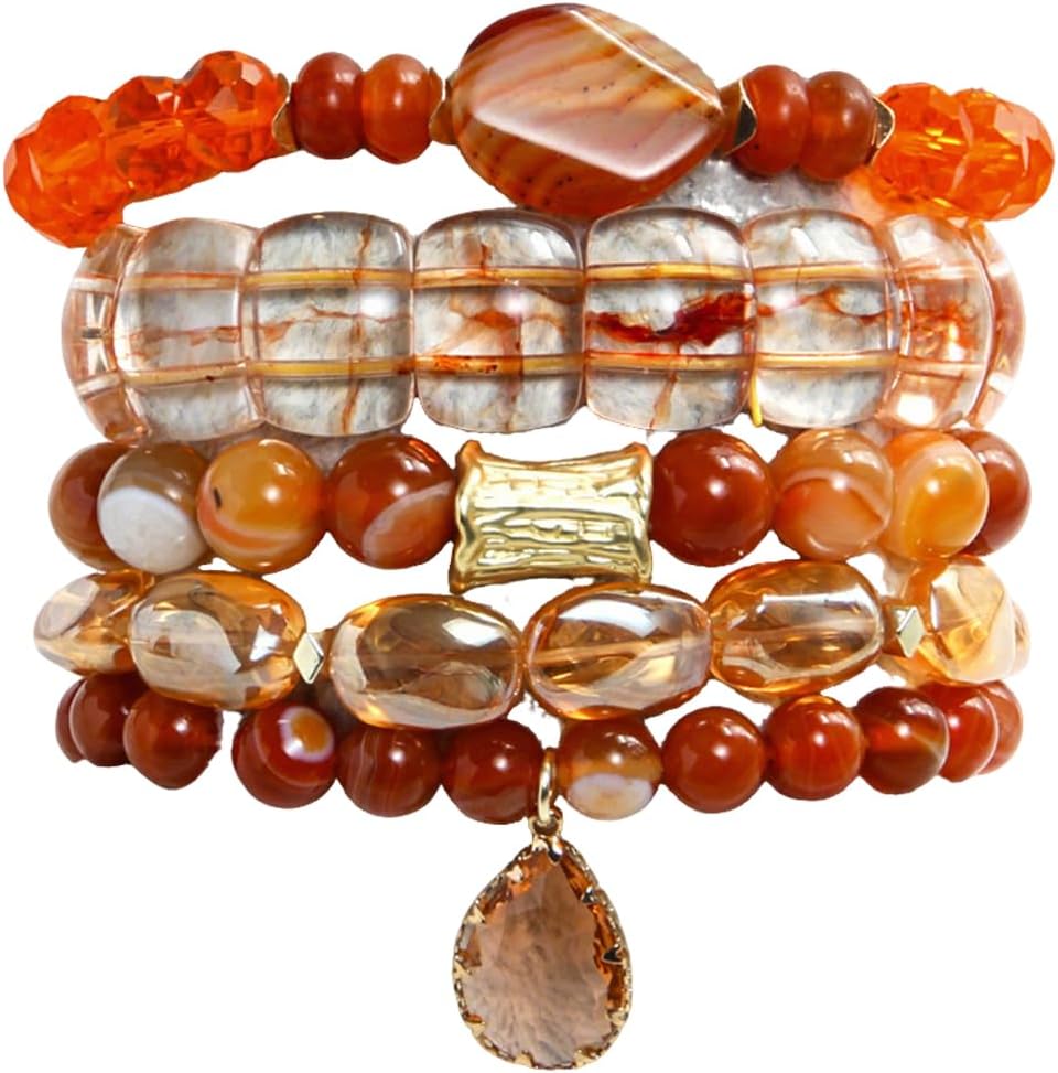 ZOSOJONA 5Pcs Boho Stackable Beaded Bracelets with Crystal Agate Pendant, Stretch Elastic Charm Bracelets for Women Jewelry Gifts